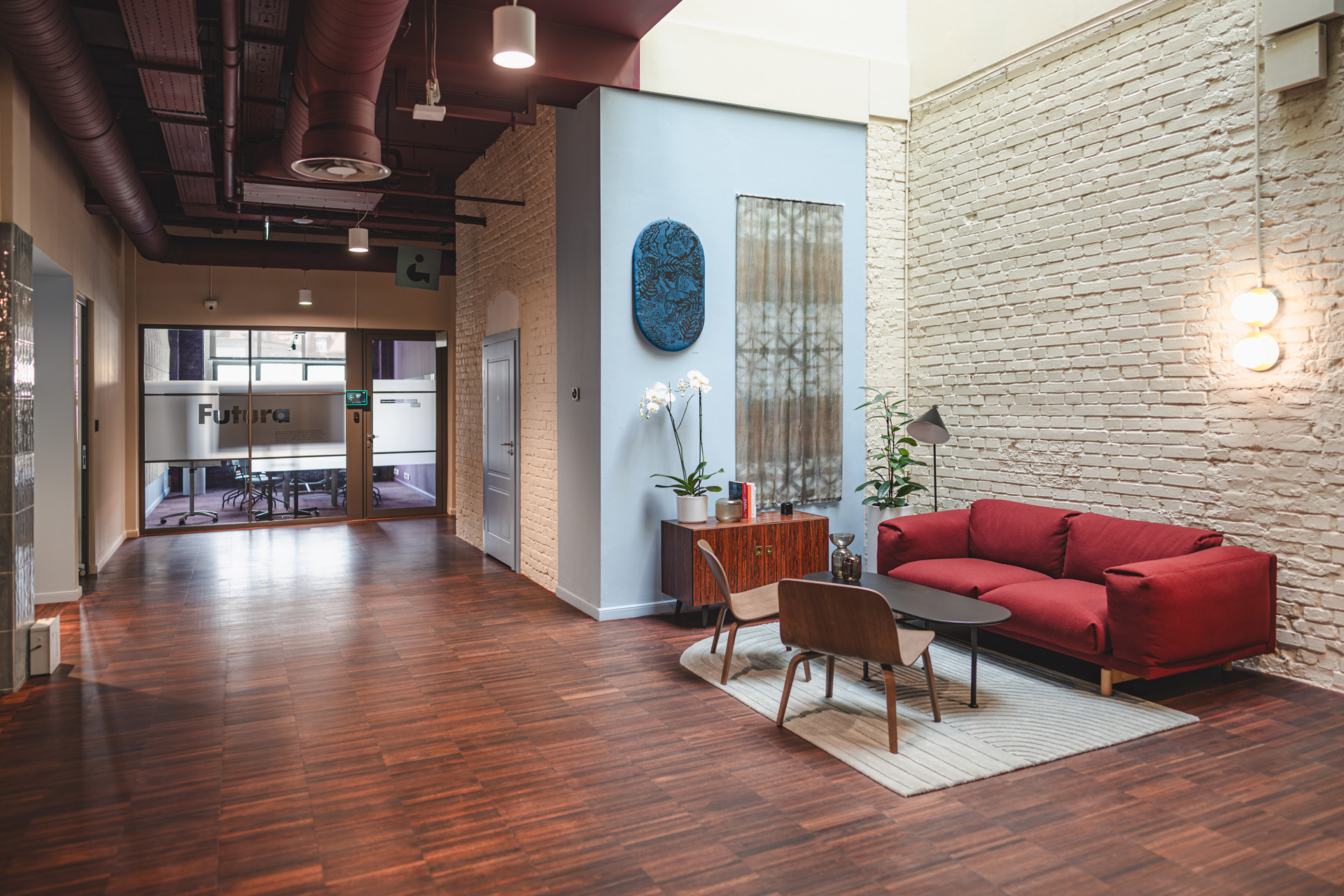 设计团队以自主研发的“未来意识设计”方法论,打造出这一标杆项目。该理念将可持续性融入空间基因:27%墙体拆除率、5%新建墙体、95%原地板保留、98%本土家具、食品废料制涂料等极致实践,将碳足迹转化为设计语言,证明可持续并非代价而是价值——历史肌理与未来科技在此共鸣,一座兼顾循环经济、人文关怀与顶级工作体验的标杆空间由此诞生。