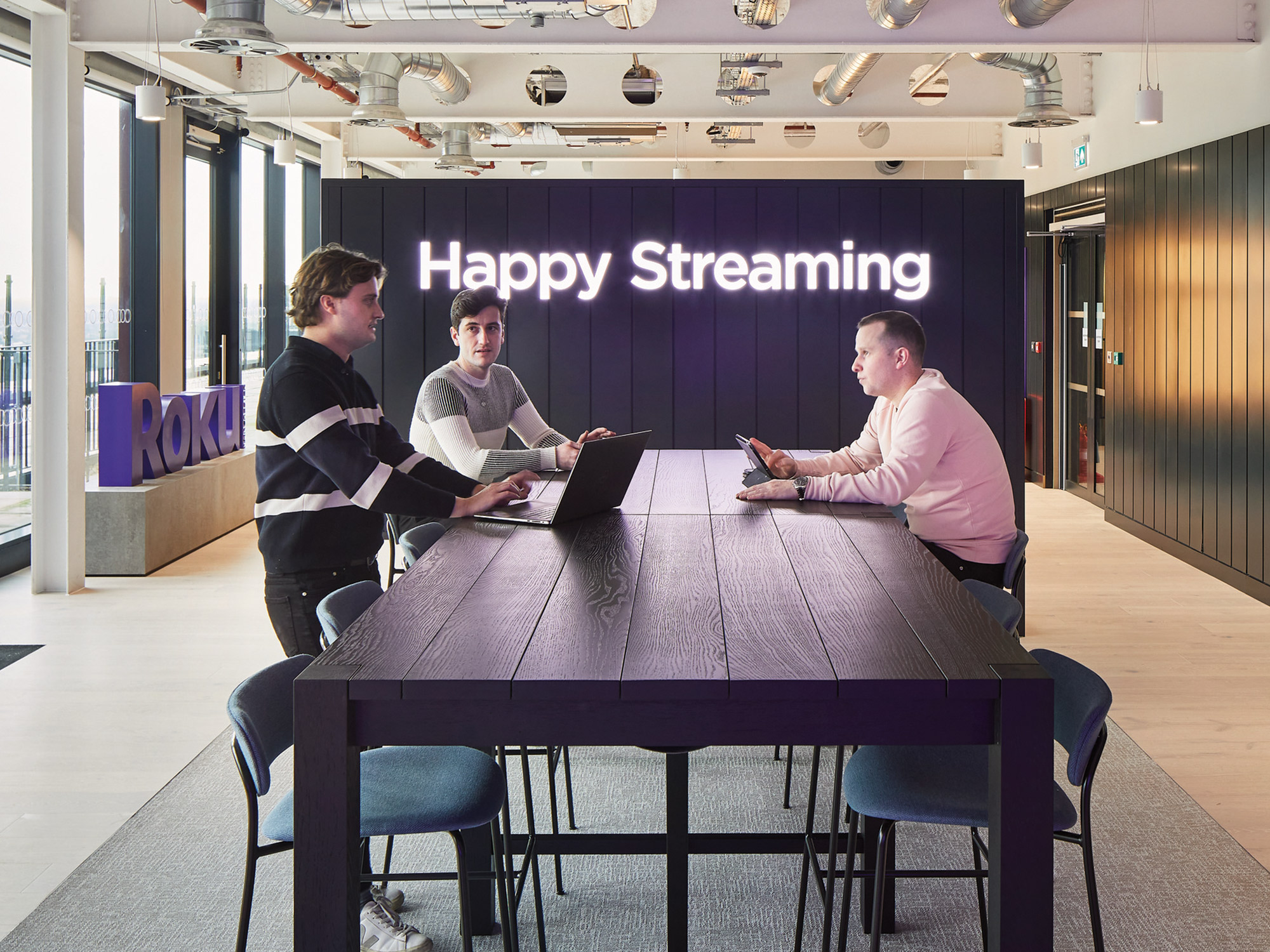 Roku曼彻斯特总部的落成标志着其在英国的关键性扩张,于Circle Square创新园区建立其重要枢纽。该办公空间横跨6.410平方米,配备尖端科技实验室、声学测试舱及客户接待区,服务于数字科技与工程领域。