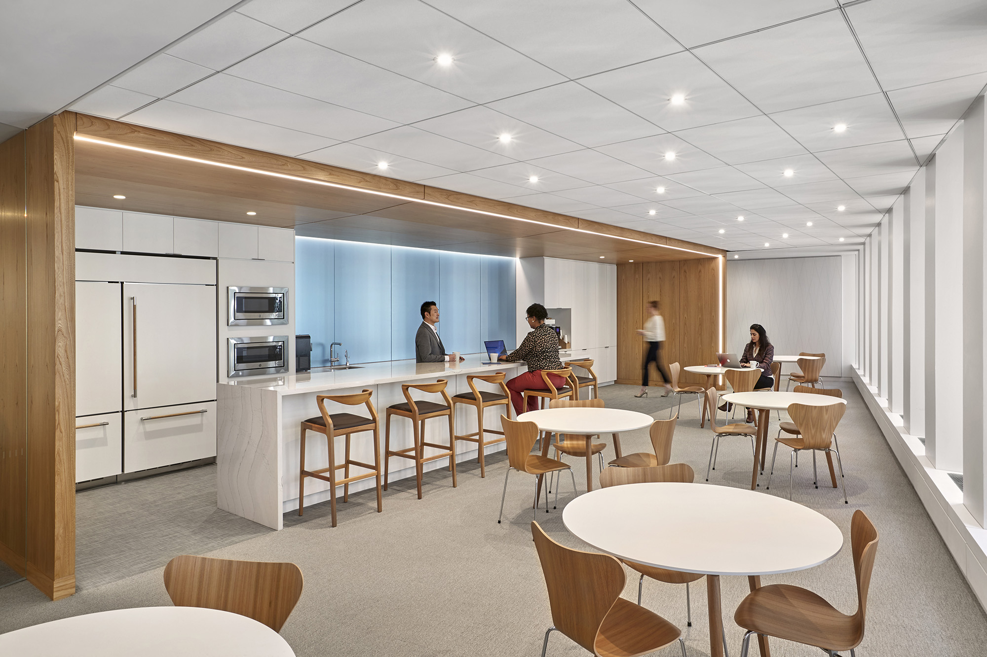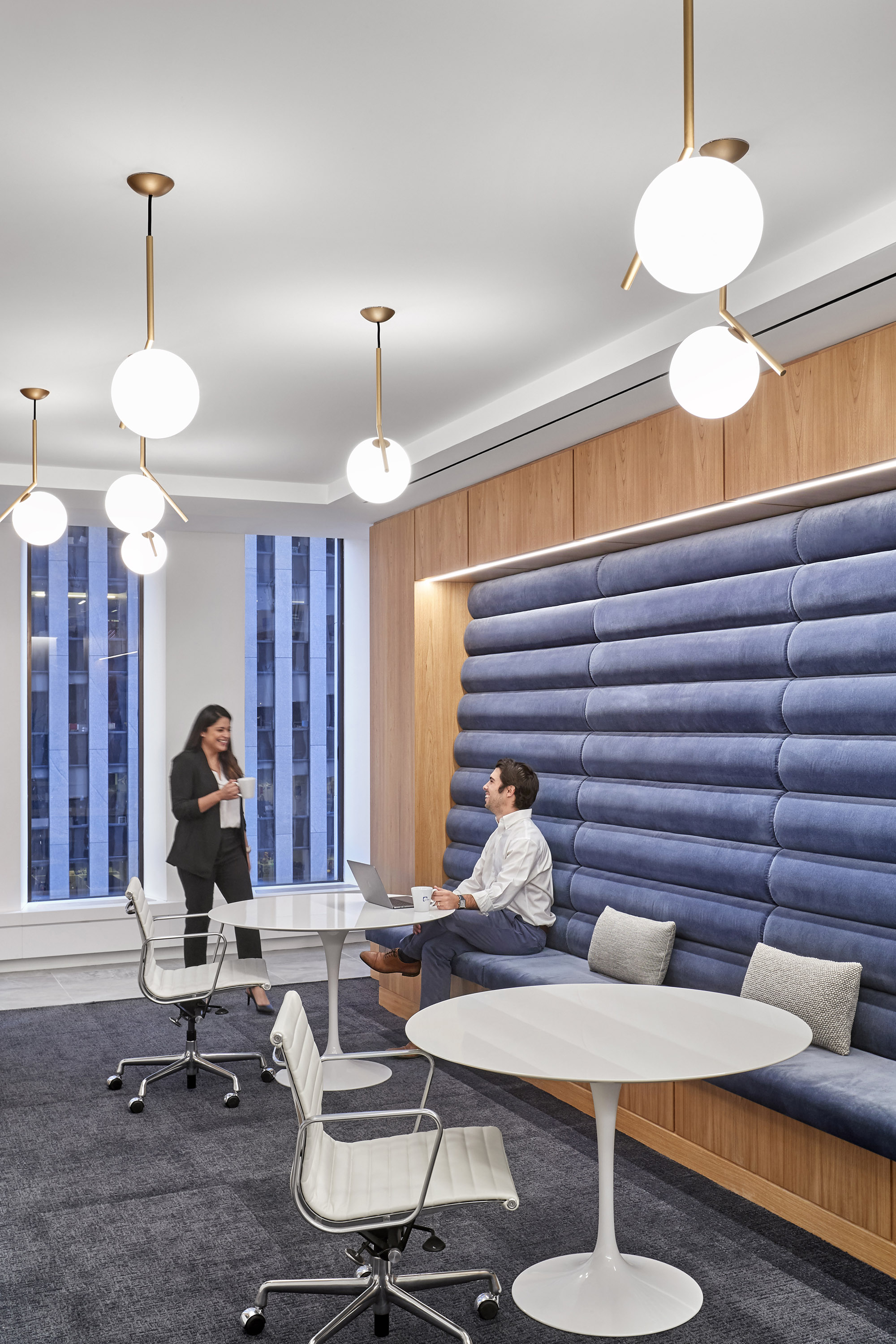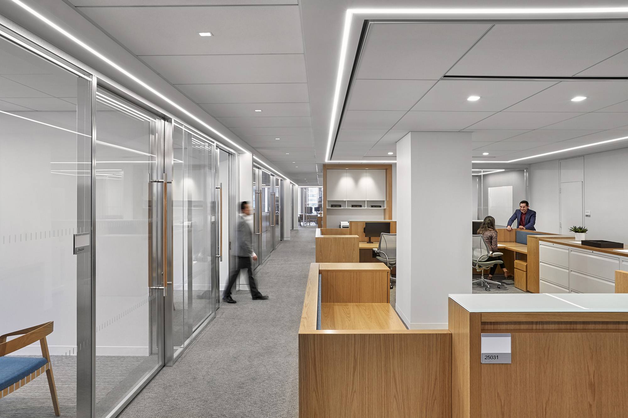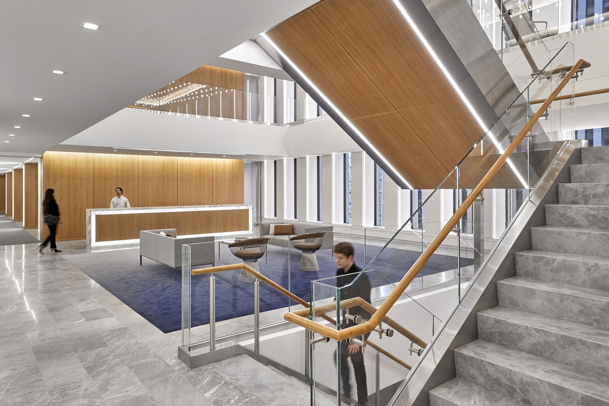 这家律所原有的办公室分散在六个缺乏连贯性的楼层中,且设计风格不尽统一。通过全盘拆除重建,新的设计规划将各业务部门整合到相邻的楼层中,采用统一的中世纪现代风格设计语言,并引入更多自然光照,搭配明亮现代的饰面材质与人机工学家具,实现了空间美学与功能性的完美统一。