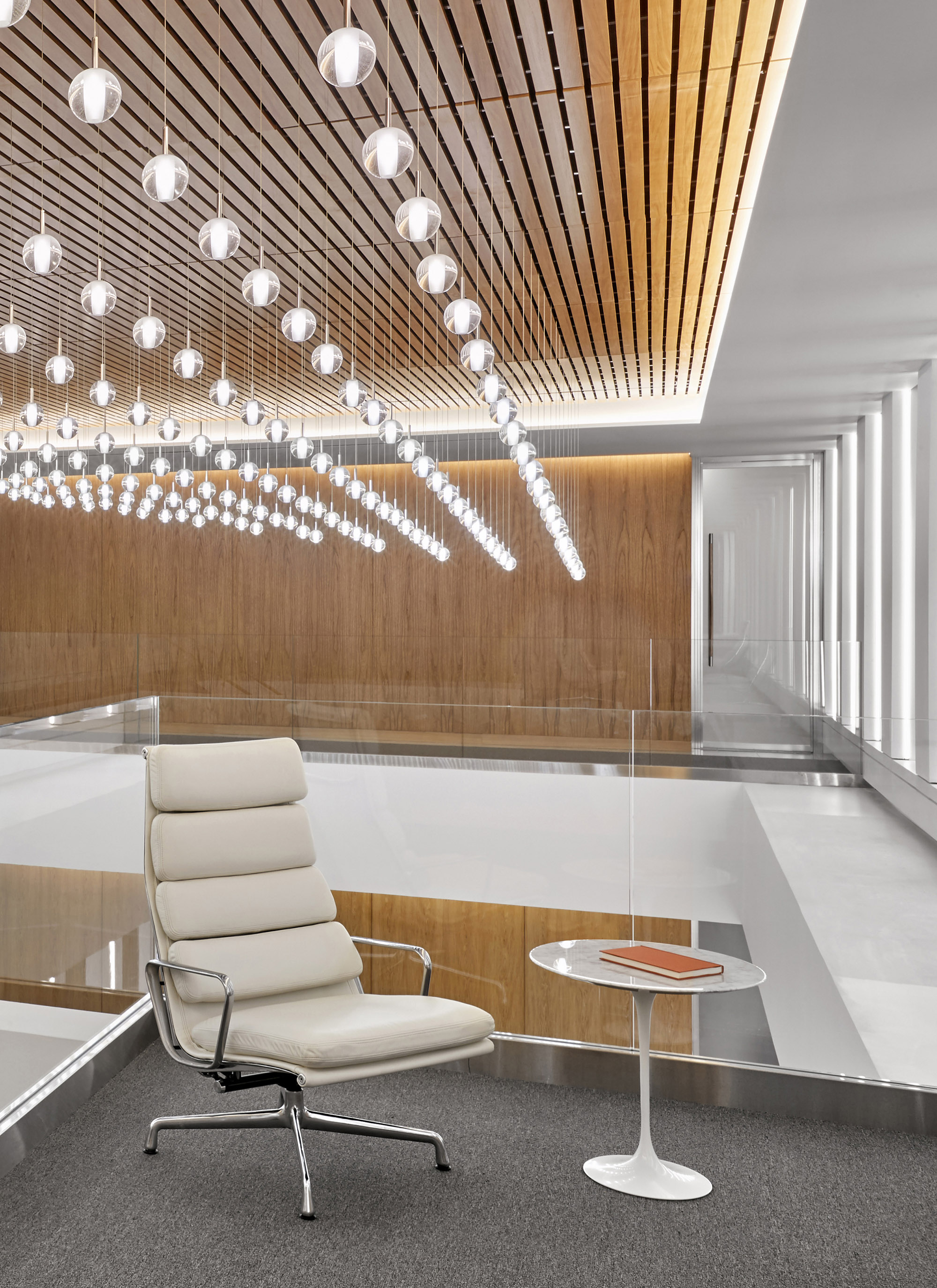整体设计延续了该律所全球统一的办公室设计标准,同时成功营造出灵动办公氛围并实现运营成本优化。设计将楼层转角及主要交通枢纽区域打造为专业会议与团队协作空间,使员工能尽享充沛自然光与优越的景观视野。