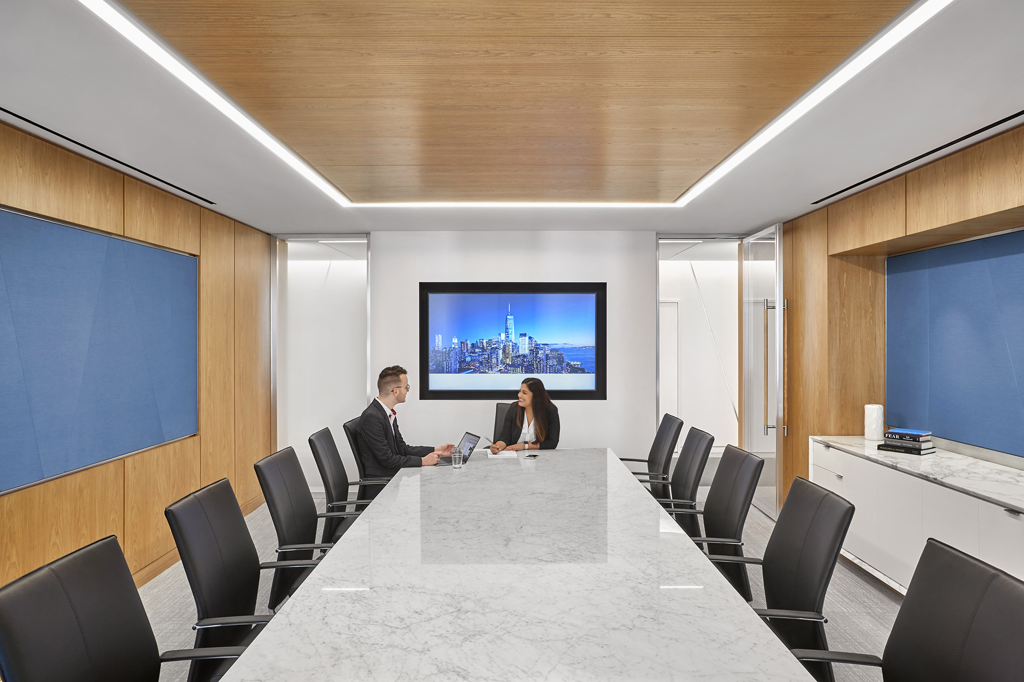 挑高两层的开阔接待区迎接着每位访客,并引导大家通向配备顶尖科技的会议中心。这个多功能会议中心坐拥曼哈顿中城全景视野,可轻松切换为培训与活动场地,配备全套沉浸式远程会议设备,更设有专属接待套间以供来宾使用。