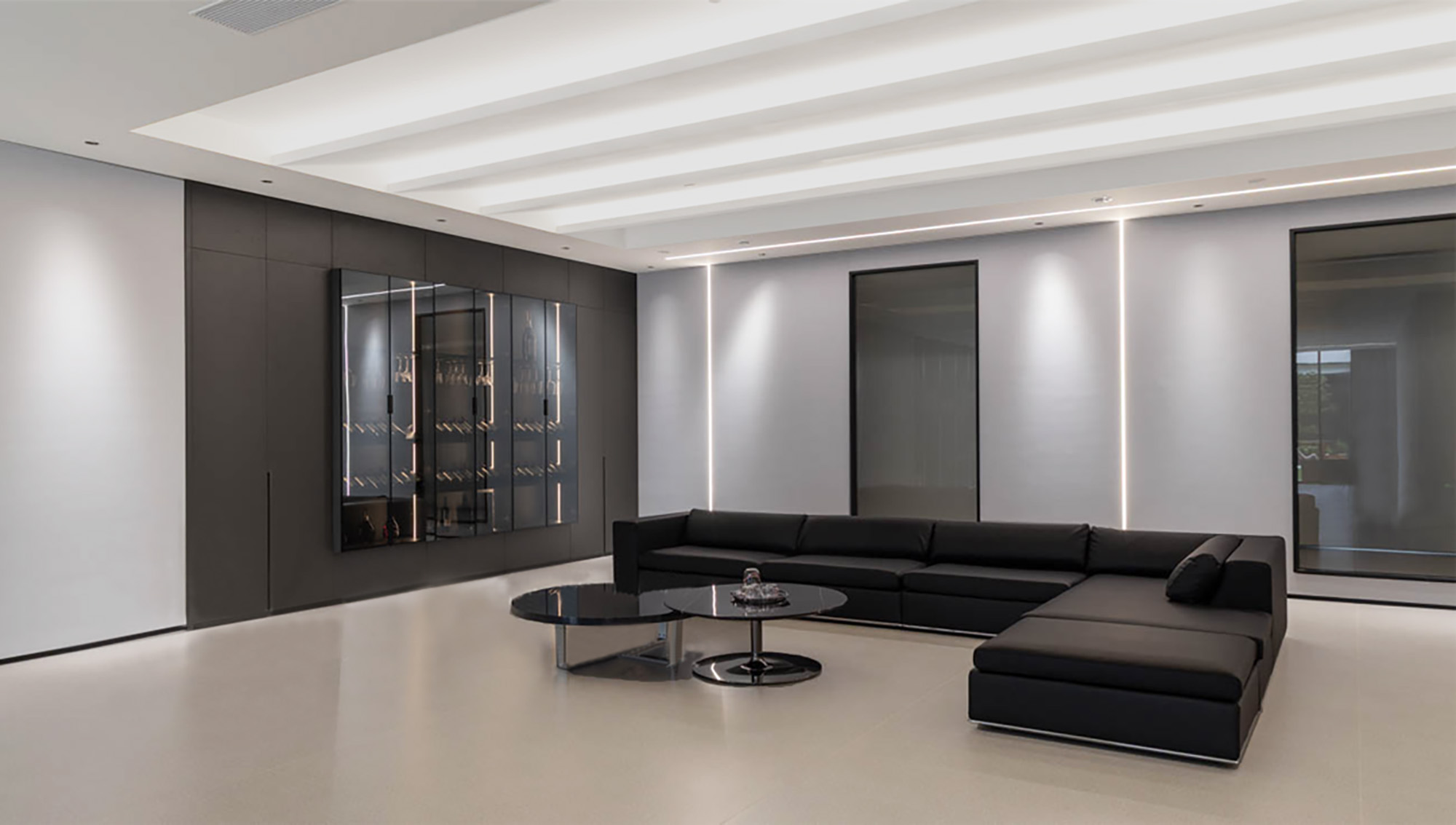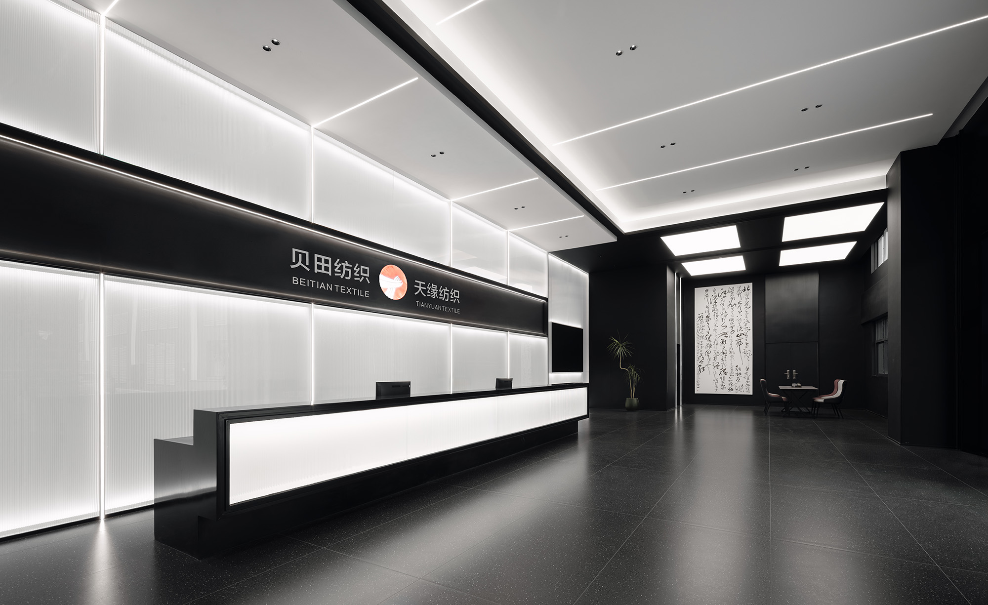本案设计跳脱传统办公空间的桎梏,将纺织的韵律、黑调的深邃与自然的生机融为一体,打造出一个兼具高级感、功能性与精神归属的场所。