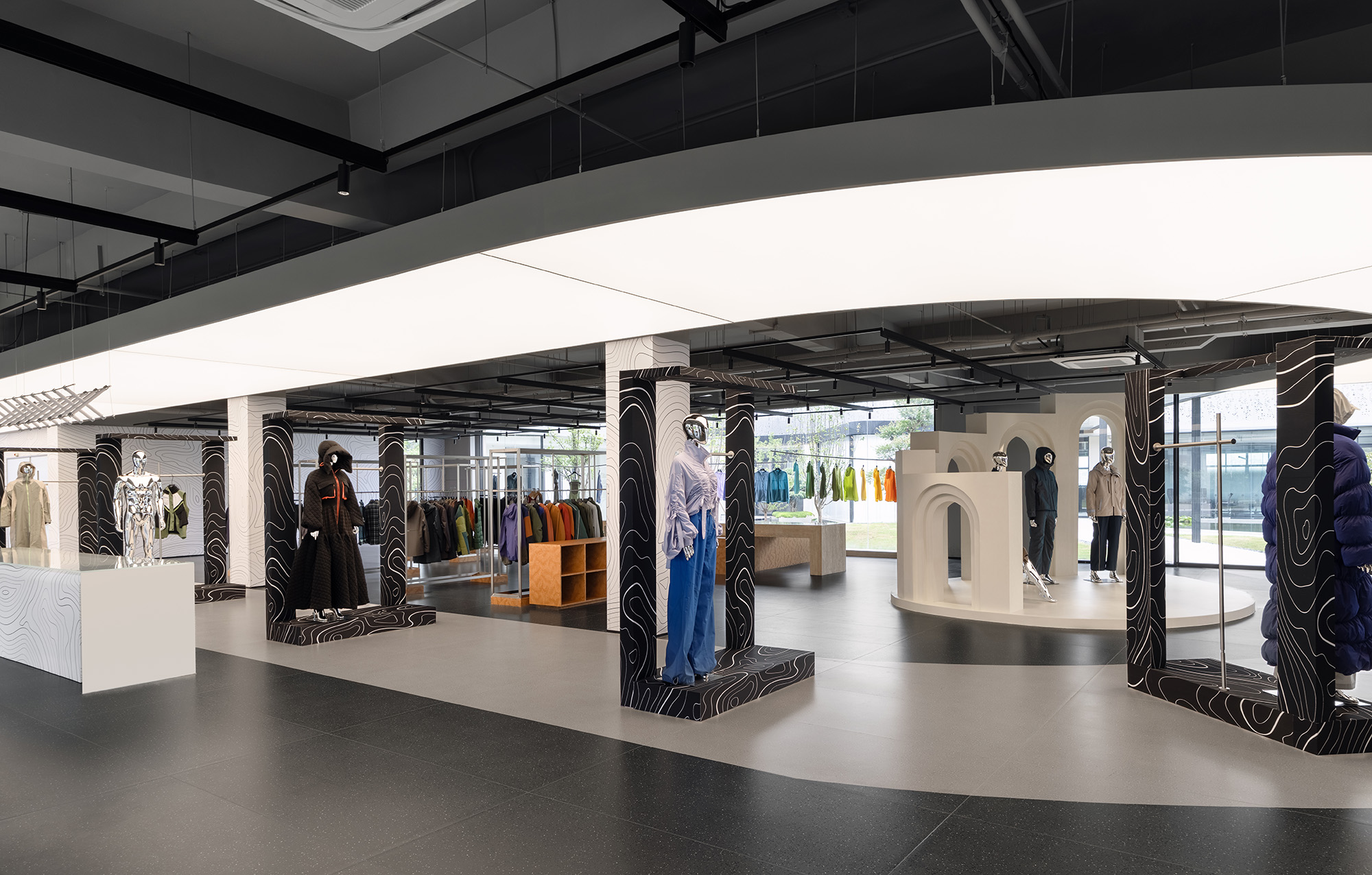 对于品牌营销而言,这样的展厅设计强化了贝田纺织的时尚属性,让客户在沉浸式体验中加深对产品的认知;同时也完成了美学的营造:它将纺织行业的“时尚基因”融入展示场景,实现了品牌气质与空间设计的统一。