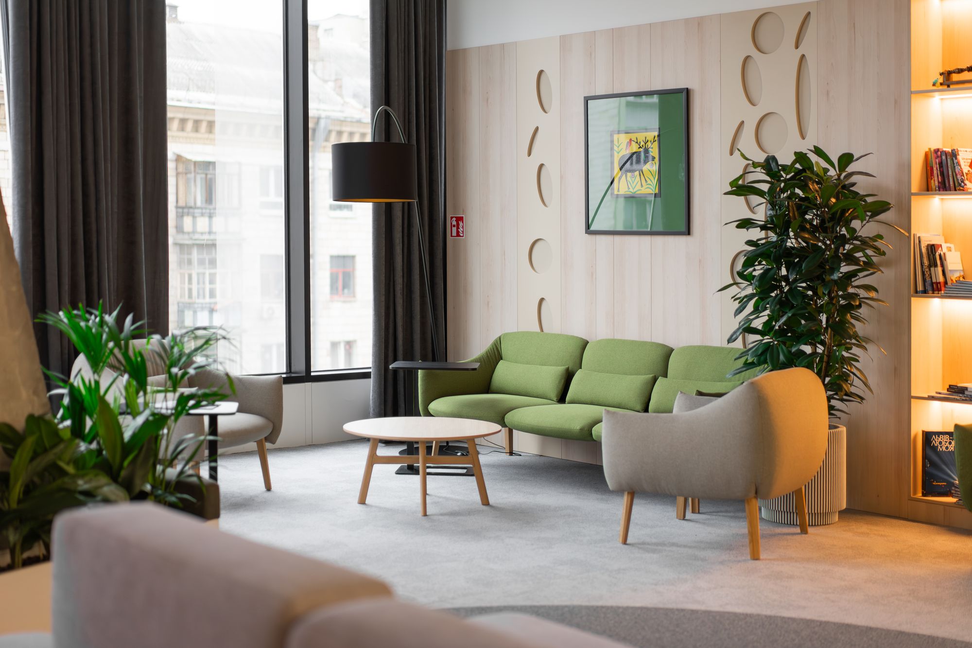 BASF巴斯夫基辅办公室由MEYT设计,占地1,222平方米,以可持续性与精准细节构筑了一个宁静而实用的空间。办公室整体采用天然材料并融入绿植元素,营造出和谐氛围,旨在促进创新思维与人际连接,生动诠释了公司秉持的创新精神、责任意识及人与自然和谐共生的核心价值观。