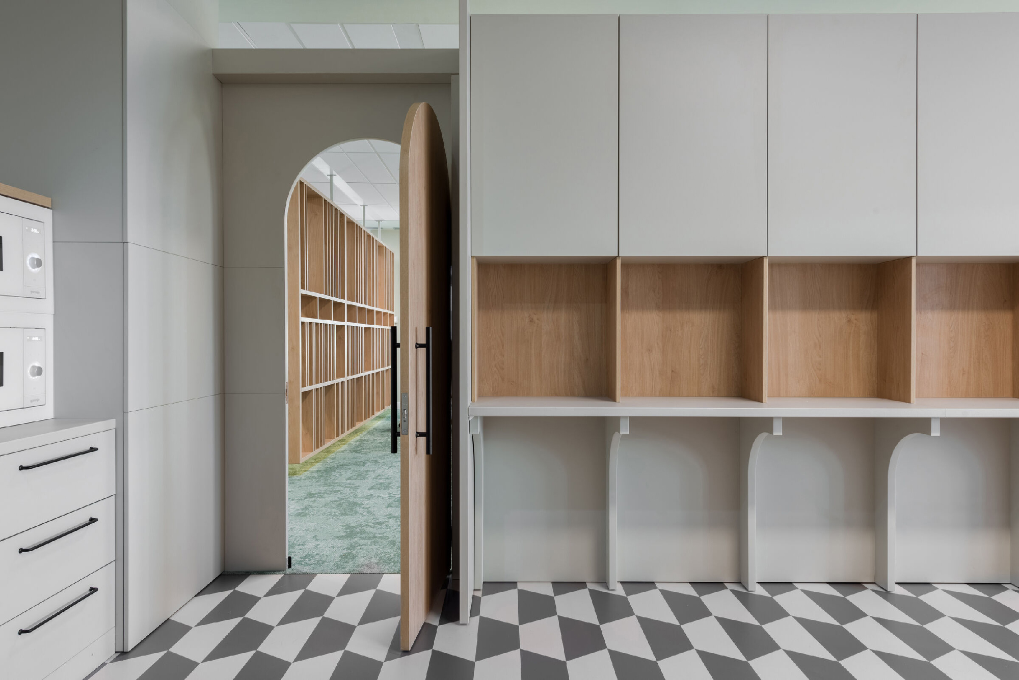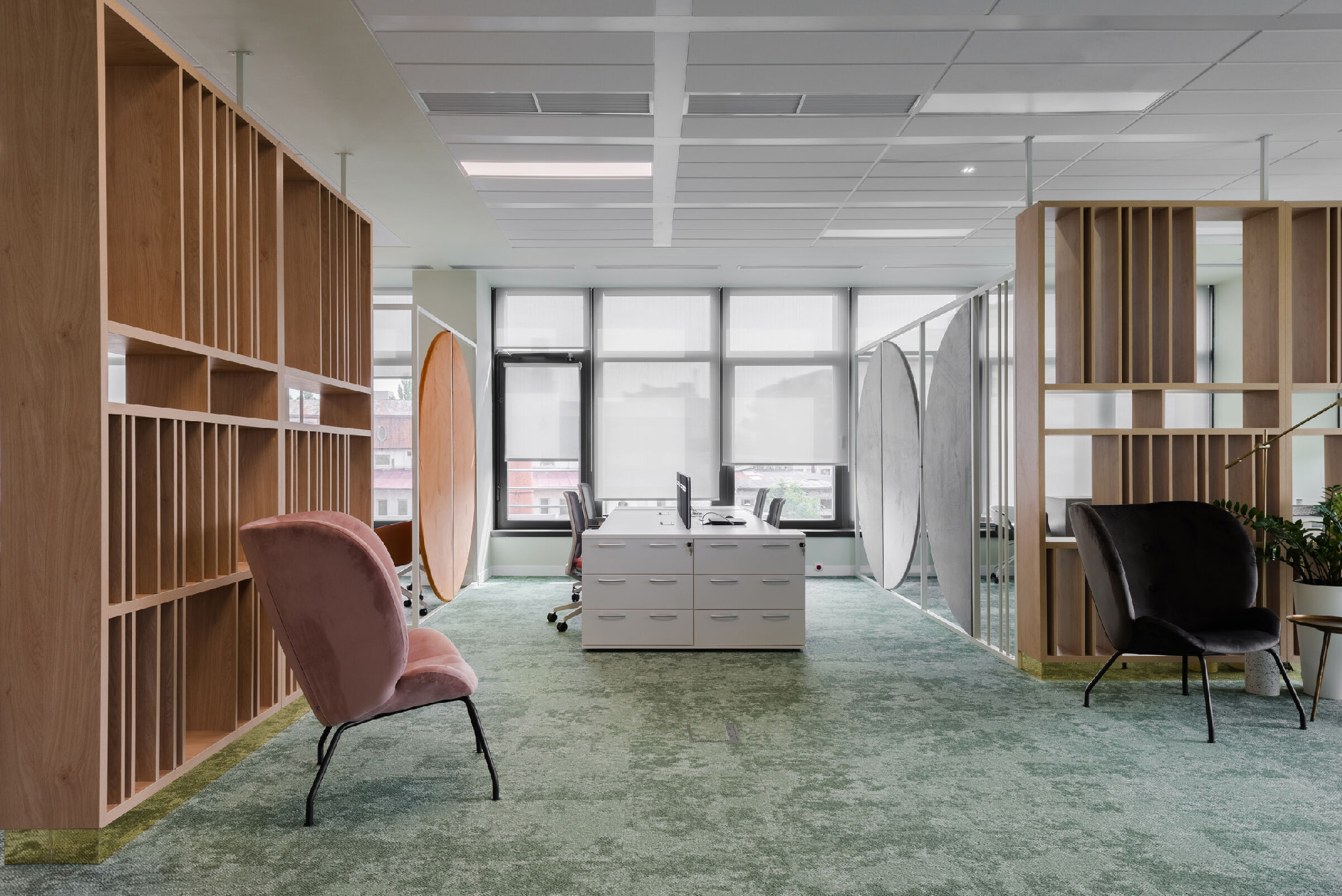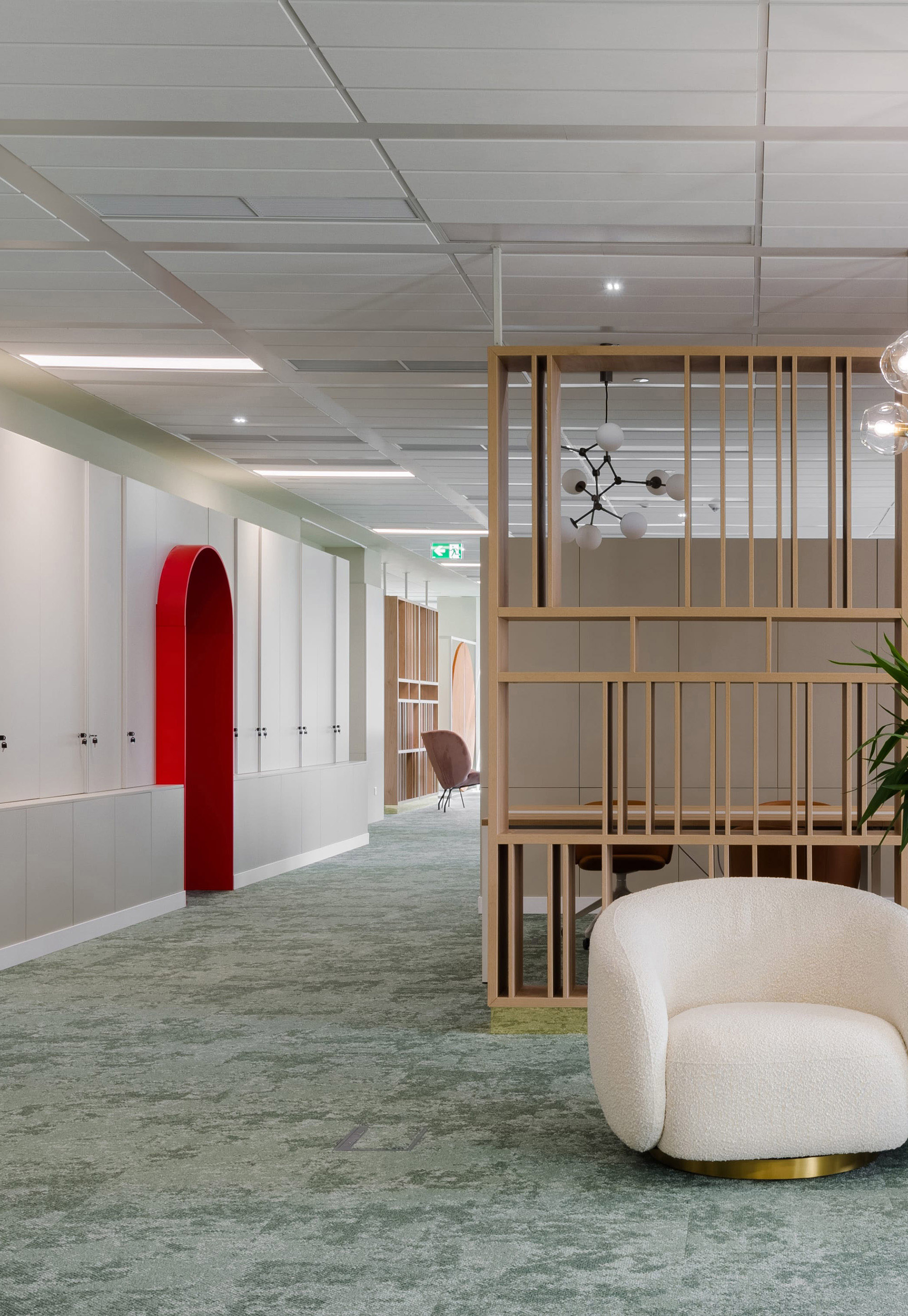 基于此,设计团队进一步探索了在不改变初始布局的前提下划分空间以实现隐私保护、并提升视觉专注度的方案,最终通过家具式隔断与装饰元素构筑出多个功能子区域。