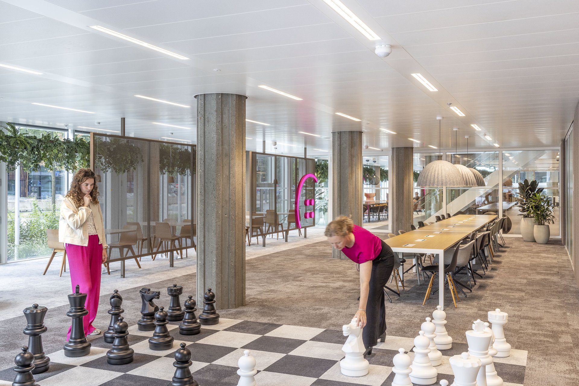在De Knoop,各功能区巧妙交织,宛若天生契合。接待台不再隐于角落,而是醒目立于C位迎接众人,成为公共空间的自然延伸。曾隐于餐厅下方的楼层,如今化身为不容忽视的活力场域——这里激发不期而遇的互动:您可以在棋盘前对弈,或在乒乓桌旁畅谈。游戏于此化作媒介,让联结自然生发。