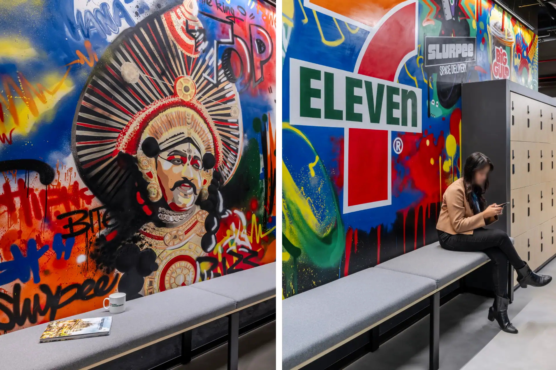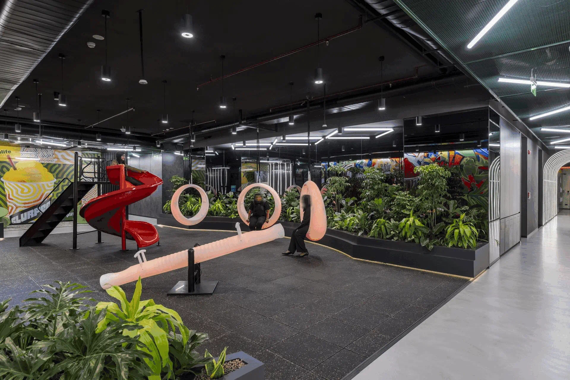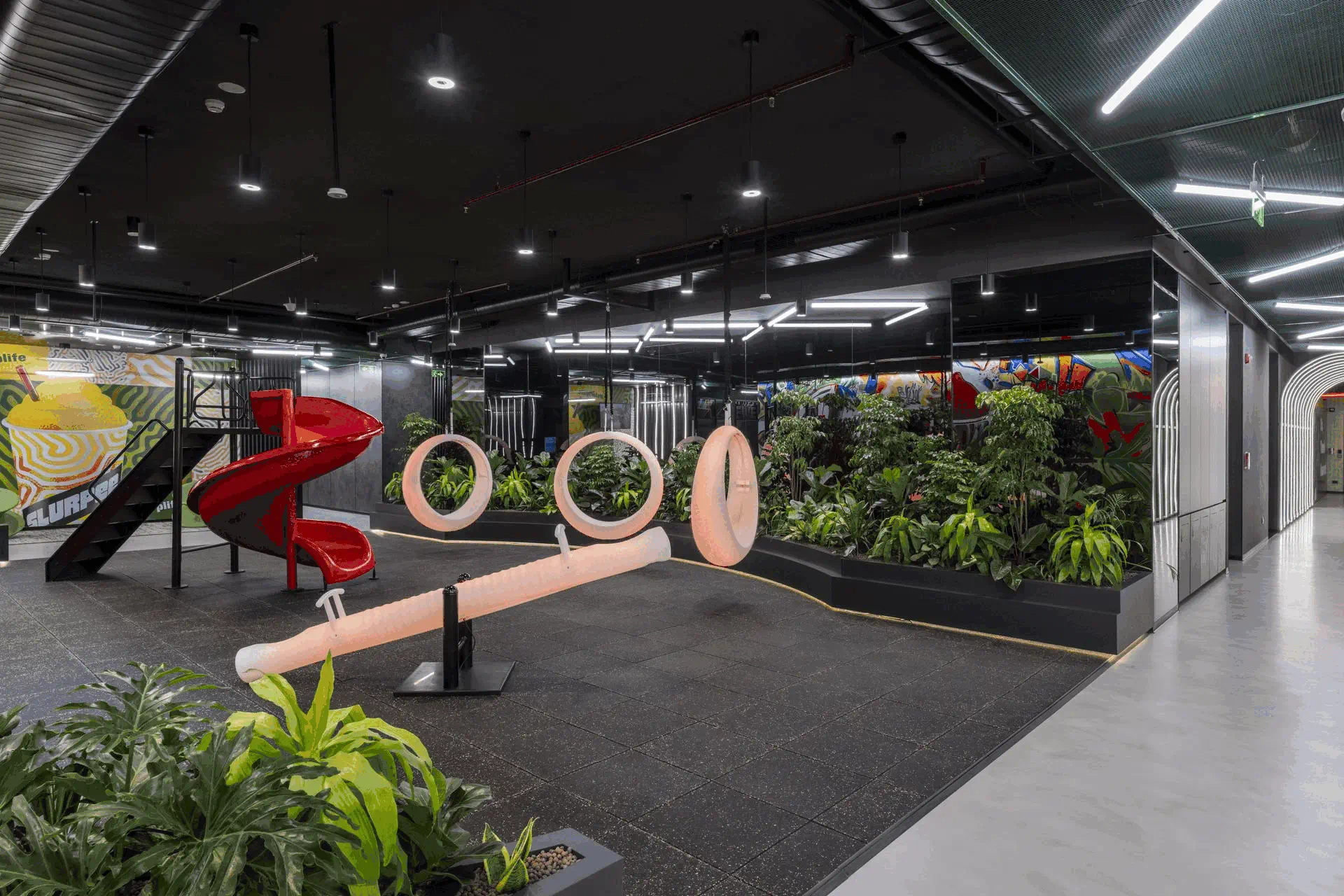 Zyeta设计团队打造的7-Eleven班加罗尔办公室以“城市游乐场”概念重塑企业空间,将高端设计与趣味元素相融合,通过沉浸式环境吸引顶尖人才、激活品牌文化。