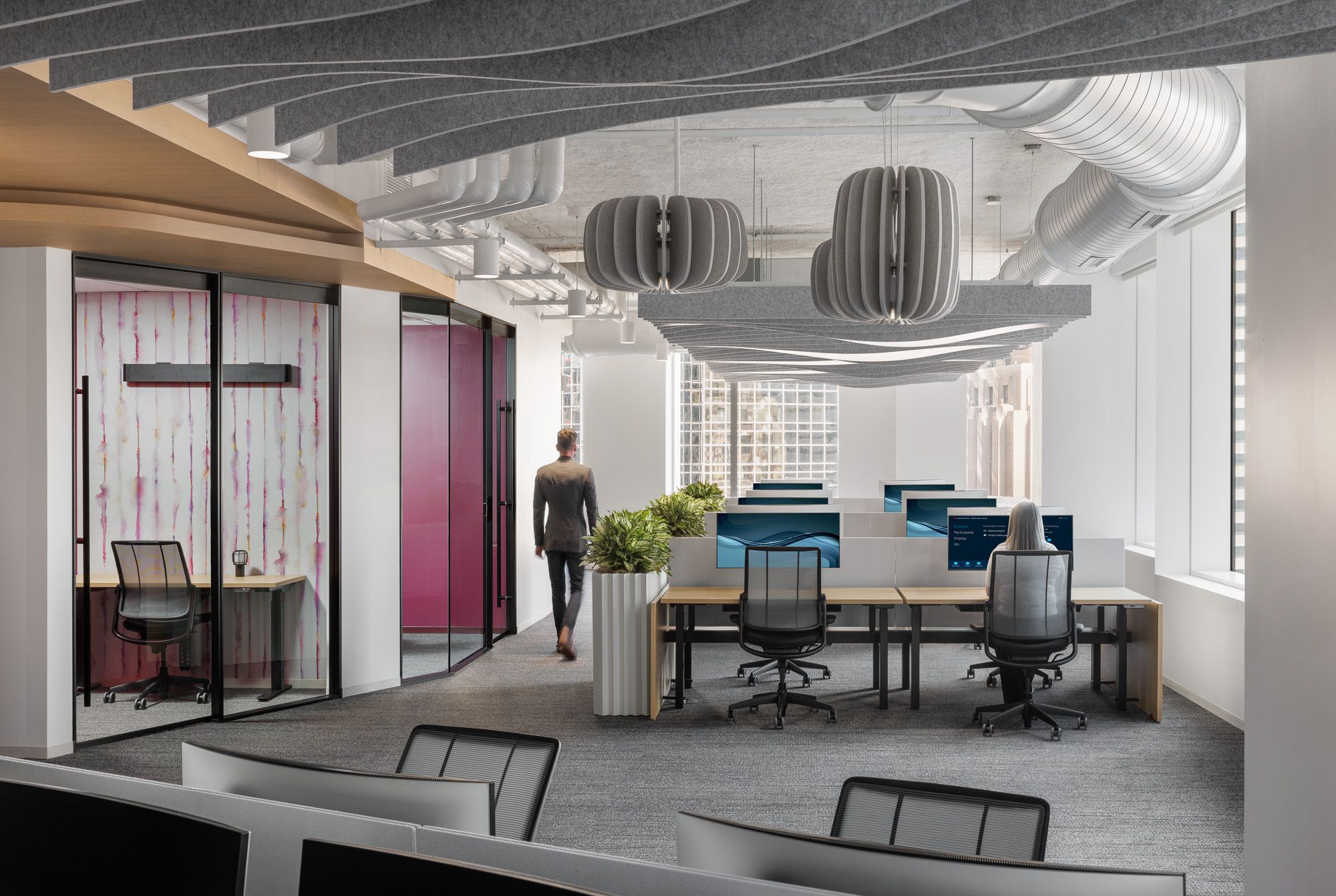 柔和流畅的曲线语言与沉静现代的色彩体系交织,共同界定了这家全球咨询公司波士顿办公场所的建筑语汇。