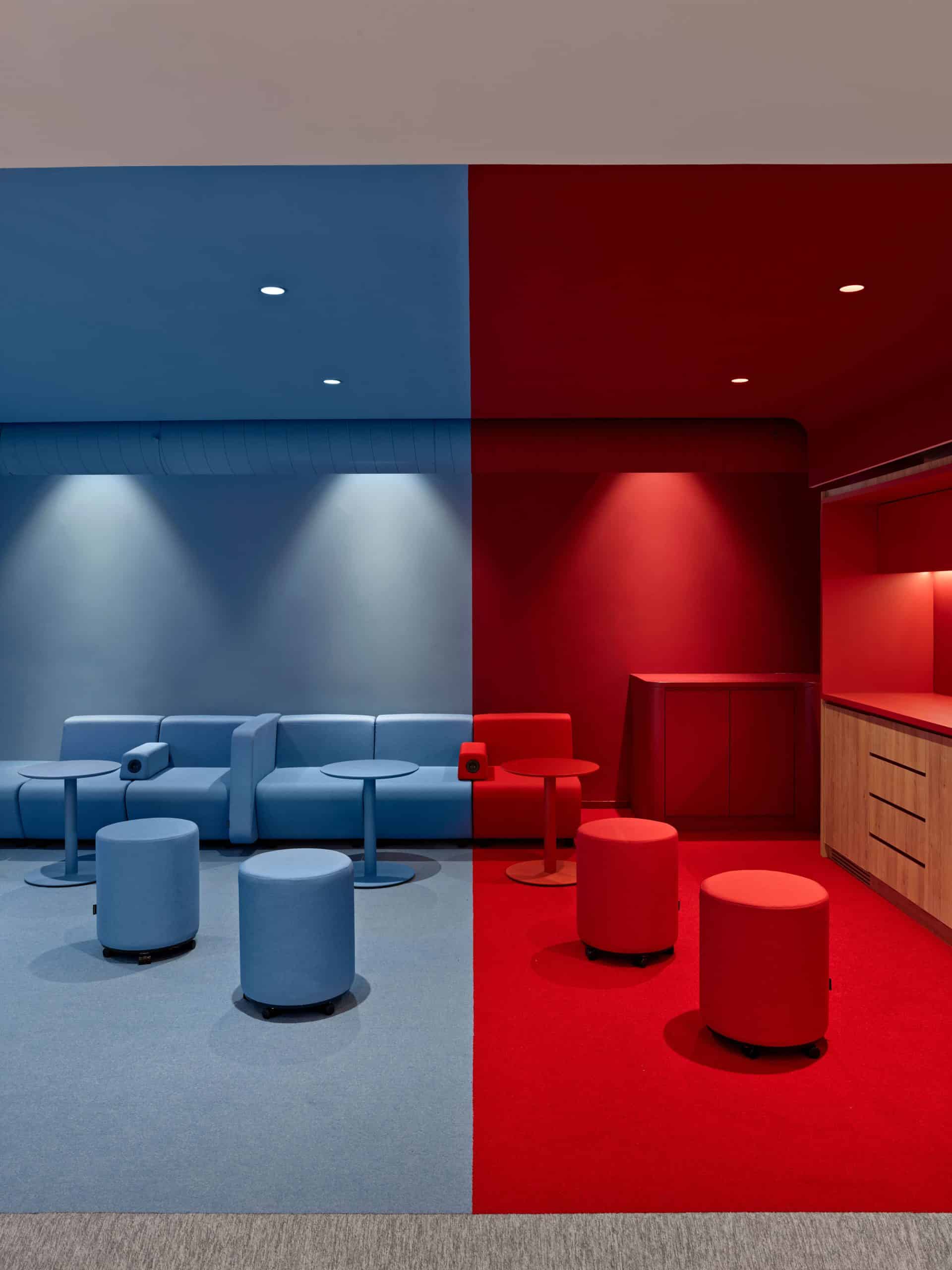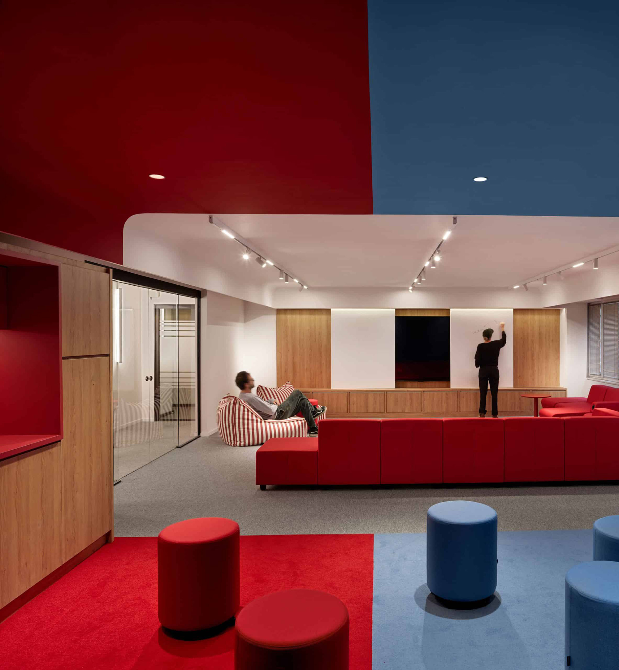 Grand Games是位于伊斯坦布尔莱文特的一家开发休闲益智类手机游戏的游戏公司,其游戏作品的视觉逻辑自然而然的成为了本次办公室设计的灵感来源。这种游戏设计风格以扁平色块、清晰轮廓和刻意简化的细节为特征,优先考虑可识别性、等级结构和即时可读性,而非追求写实或装饰性。