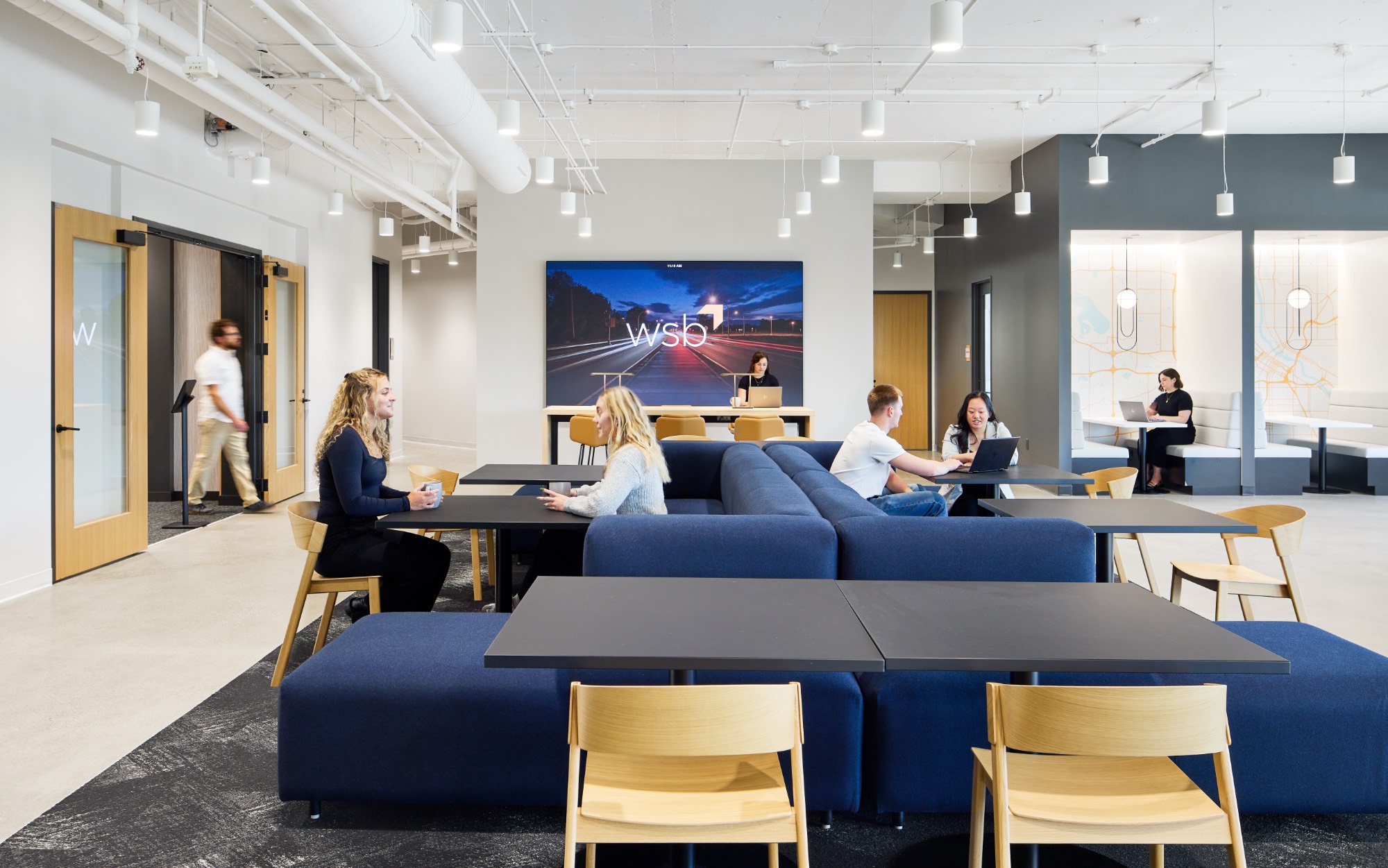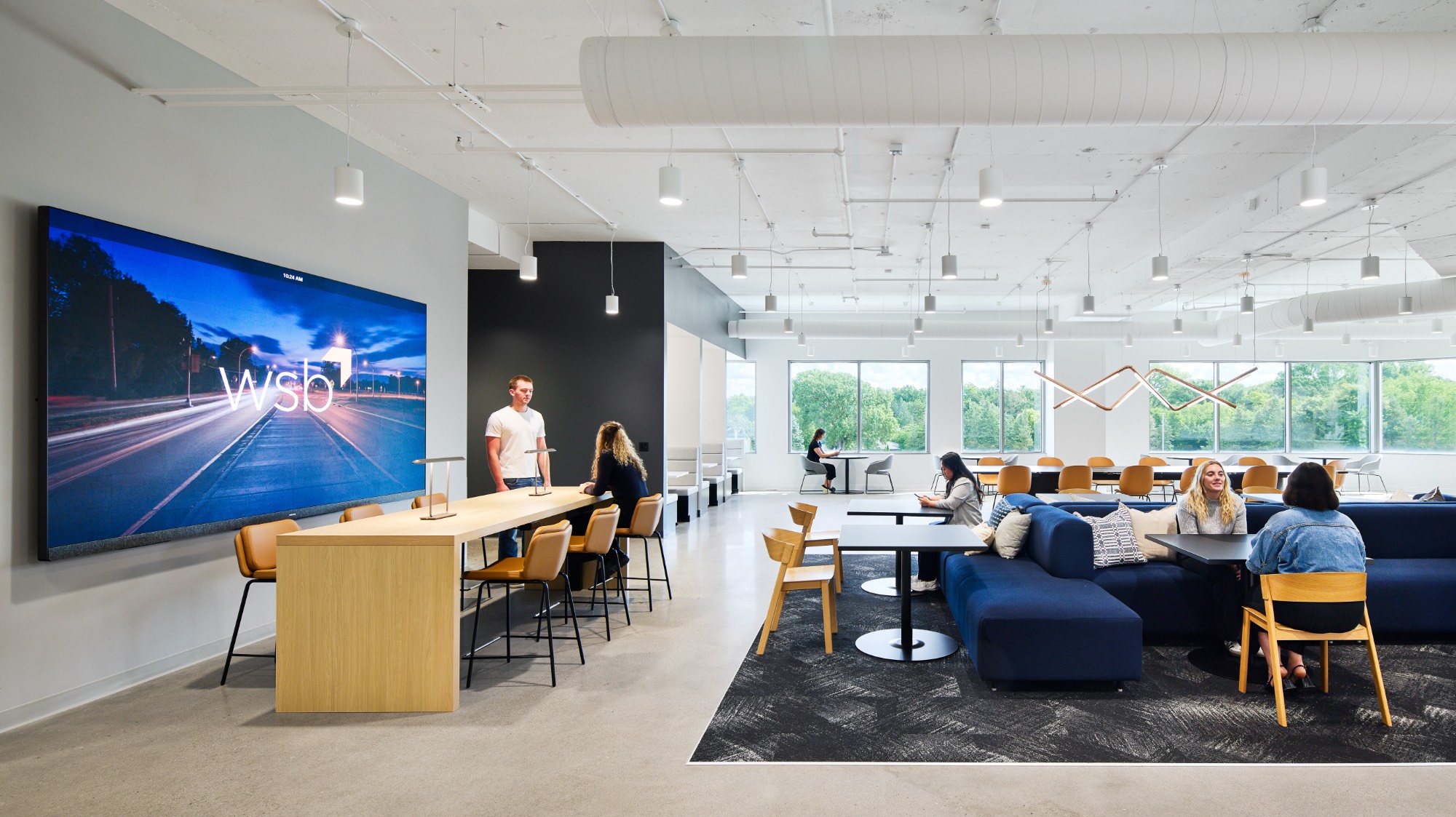 在WSB公司经历重大发展与变革的时期,Studio BV设计团队与其历时三年合作,共同重塑了其总部空间。随着WSB与另一家全国性工程公司合并,公司规模扩大了一倍,这促使他们以全新视角审视办公场所将如何演变,以支持更庞大、更具活力的团队。在探索多种方案后,就地改造被证明是最具可持续性和战略性的选择。