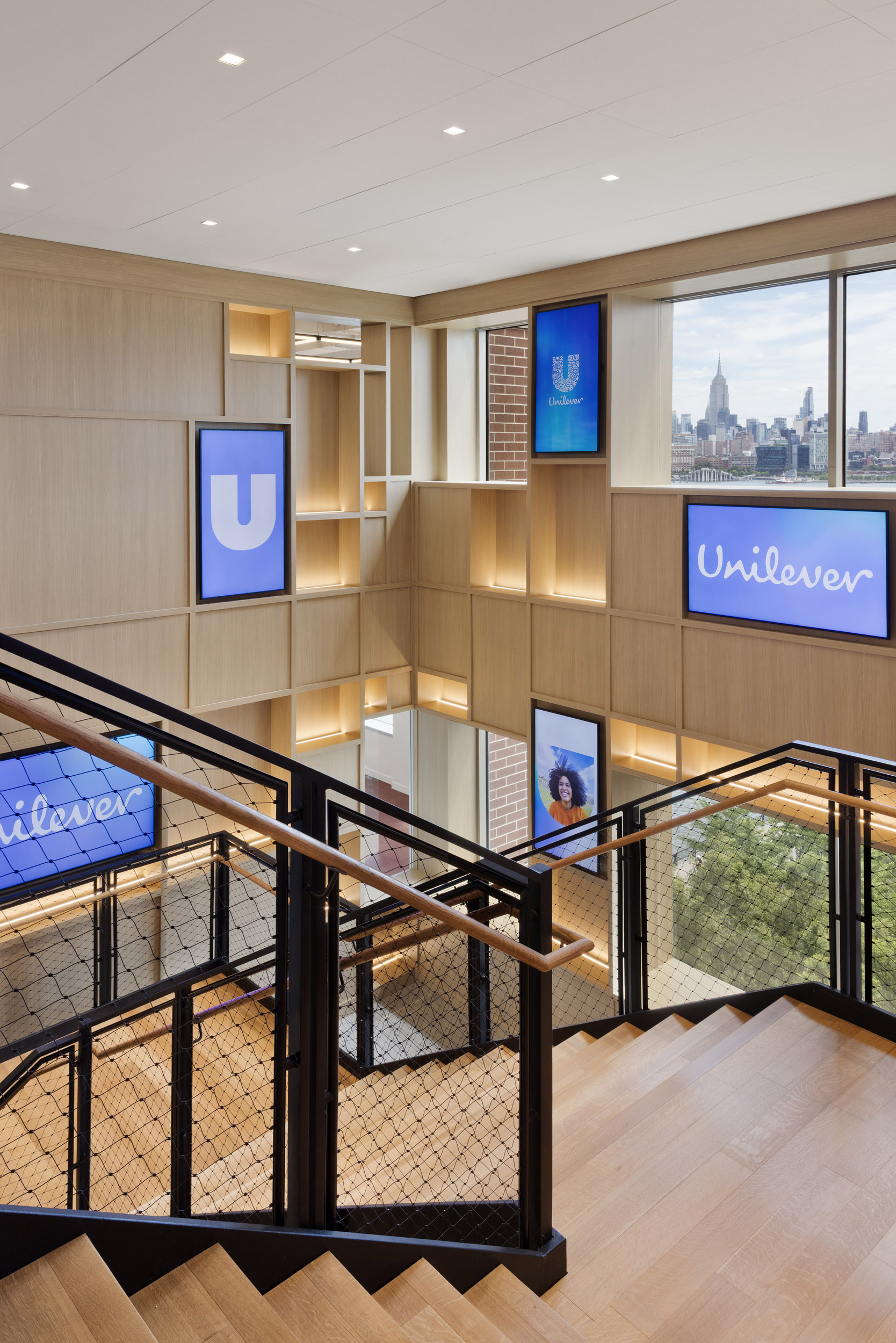 联合利华从新泽西郊区的办公园区迁至霍博肯滨水地区的一栋建筑内,标志着其办公空间战略发生了显著转变。这座三层楼高的新园区坐落于哈德逊河沿岸充满活力的市中心区,将曼哈顿的全景尽收眼底,时刻彰显着公司的全球影响力。