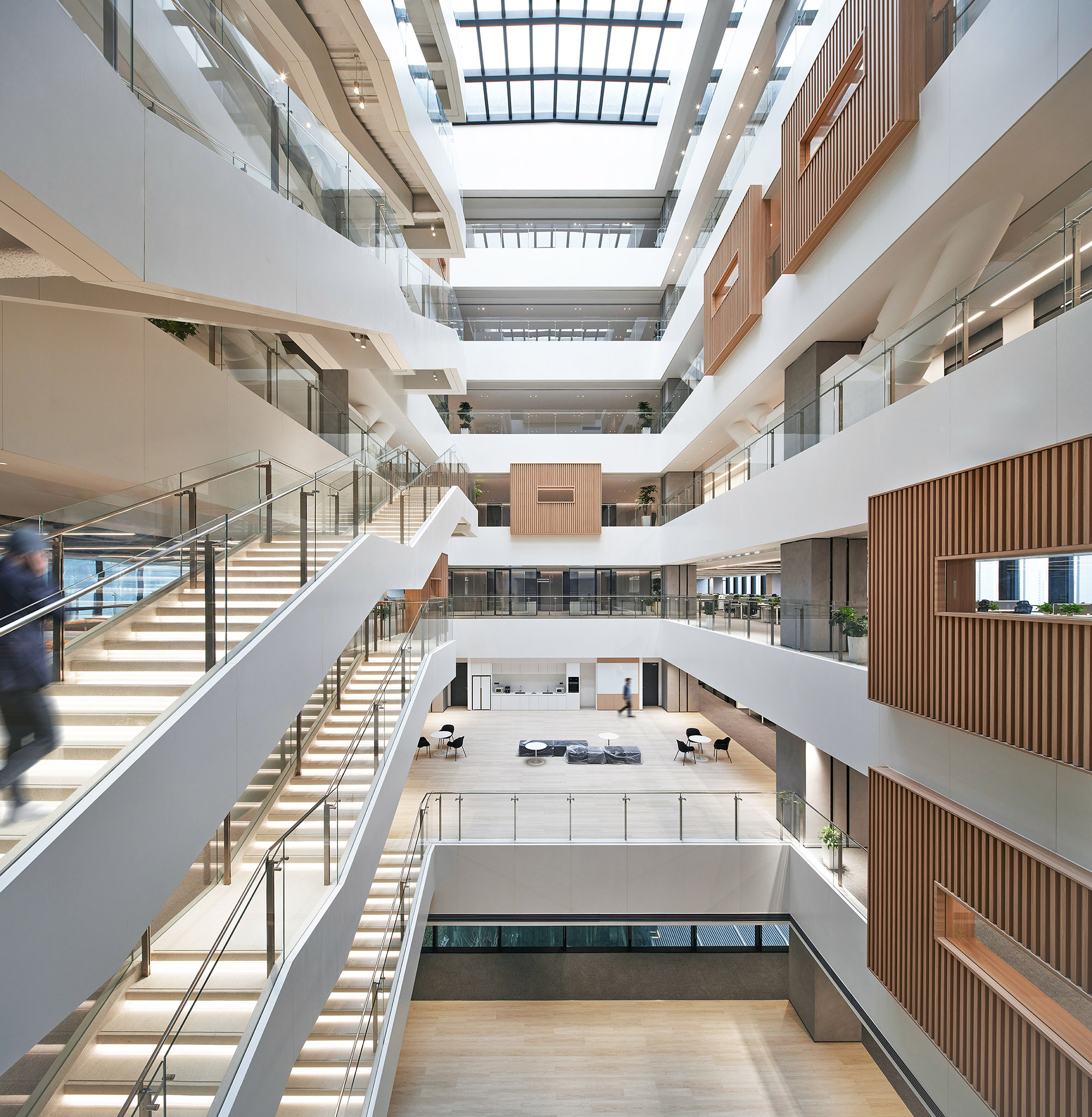 多样化的中庭则为员工提供了丰富的活动场景,这里既可以作为员工日常讨论、交流的空间,也可以举办培训、团建等活动。