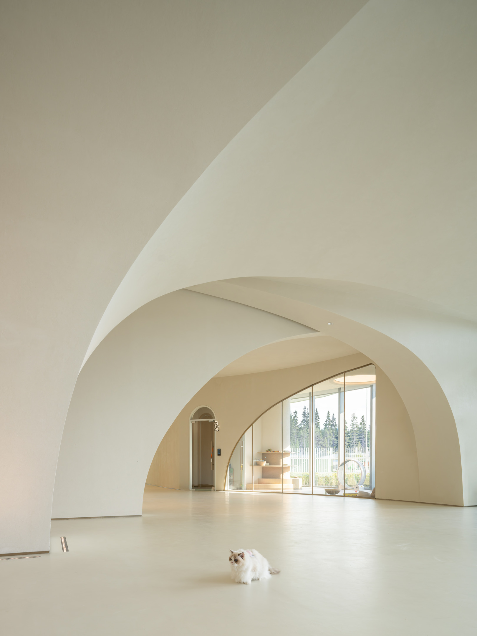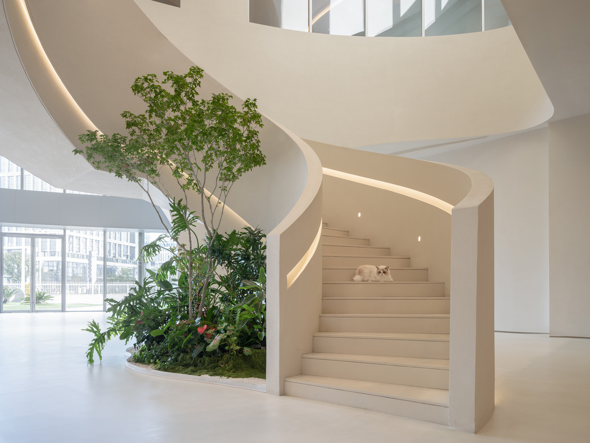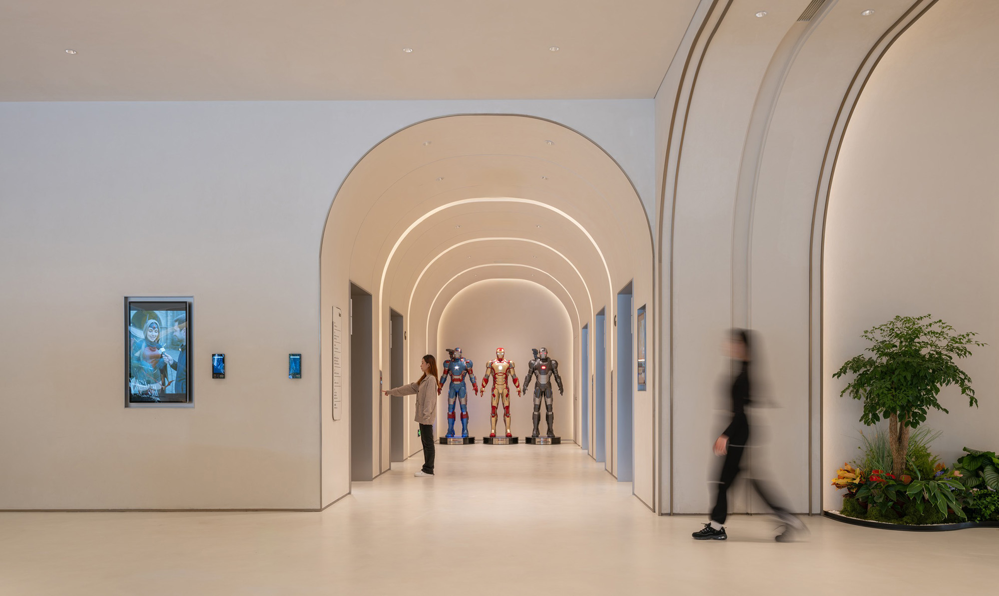 一层大堂以“兔子洞”为叙事起点,打破日常逻辑,引导访客暂时脱离现实,进入奇异而富有仪式感的世界。形态化结构、沉浸式动线与企业展示共同营造出强烈的到达体验。