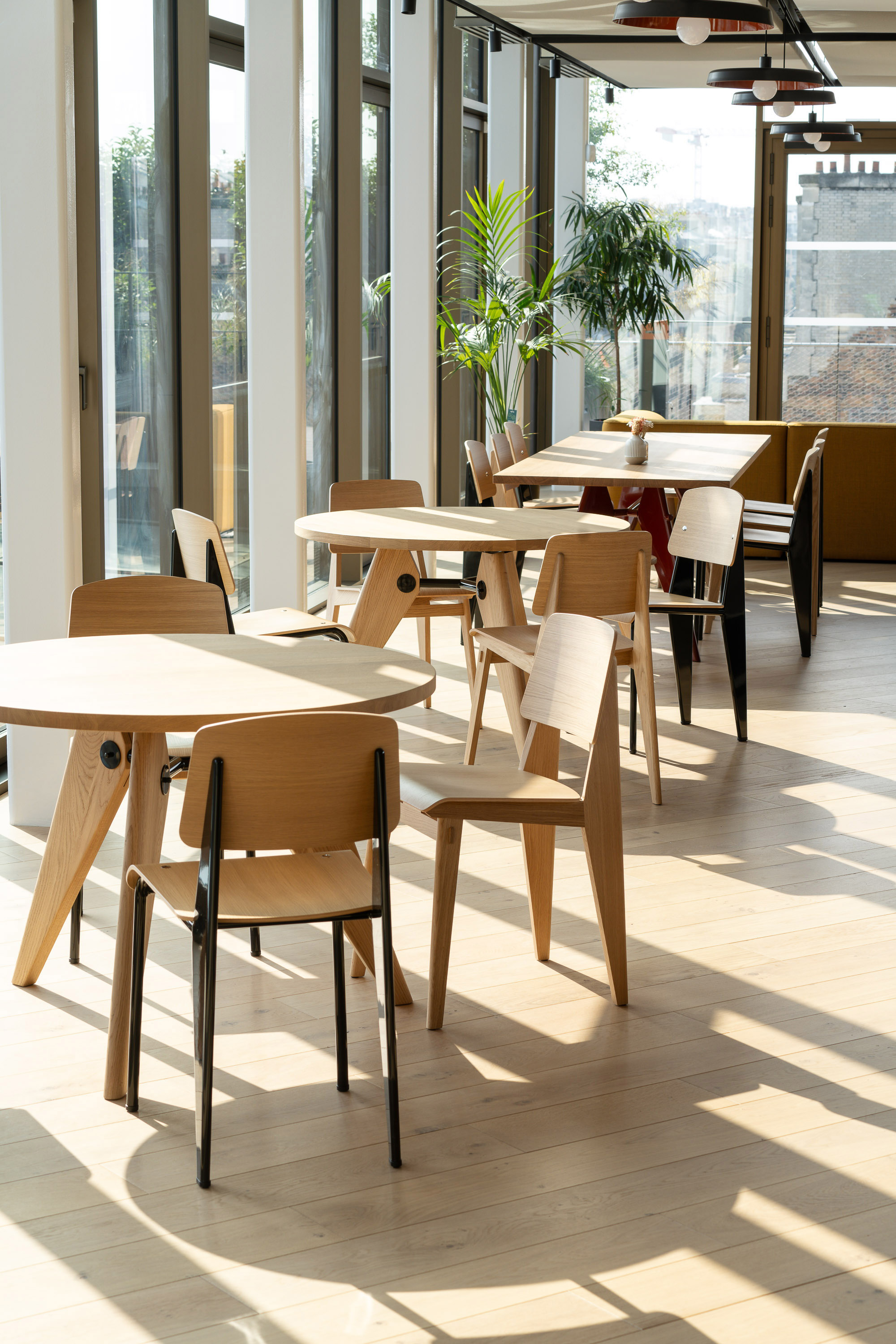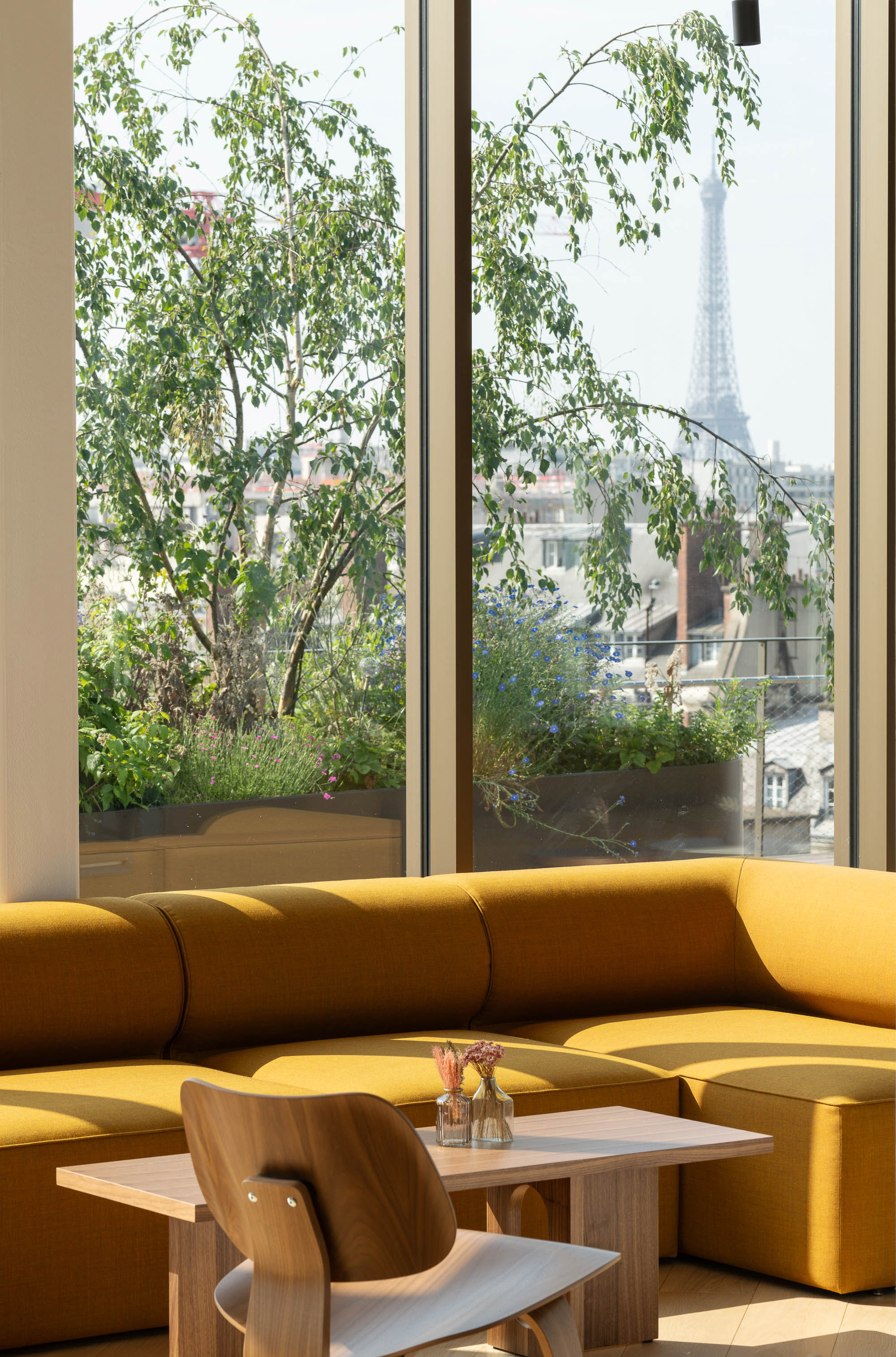 办公空间体验主要围绕两个关键楼层展开。一层营造出温馨而充满活力的环境,设有咖啡馆、广场式集会空间以及多种会议与互动区域,旨在鼓励交流、增进社区感。该楼层成为了大楼内的社交与文化中心。七层则沐浴在充足的自然光中,共享会议室、工作咖啡厅以及可俯瞰巴黎全景的景观露台,共同为协作与非正式聚会打造出鼓舞人心的场所。这两个核心楼层奠定了整体体验的基调,进一步强化了这座大楼作为“目的地”而非仅仅是“办公室”的角色定位。