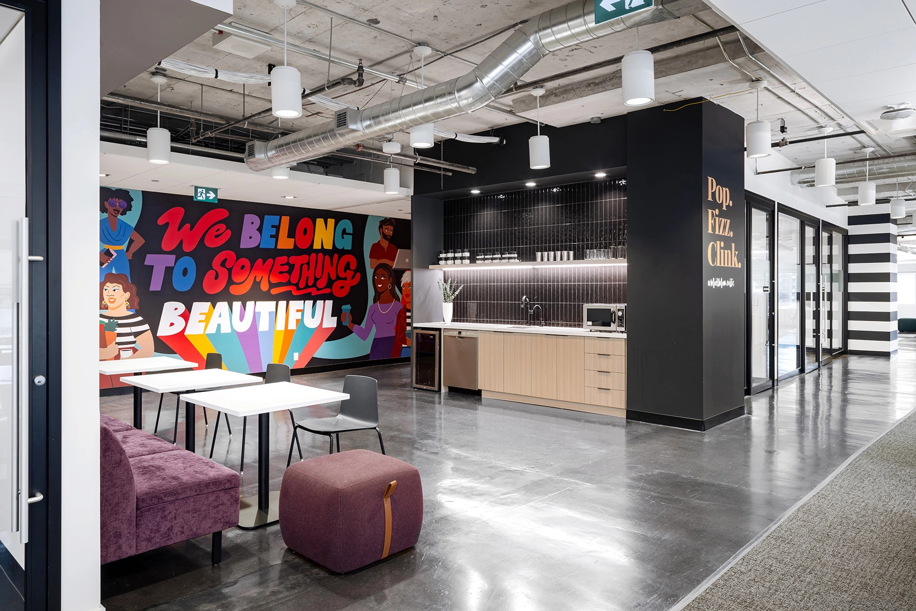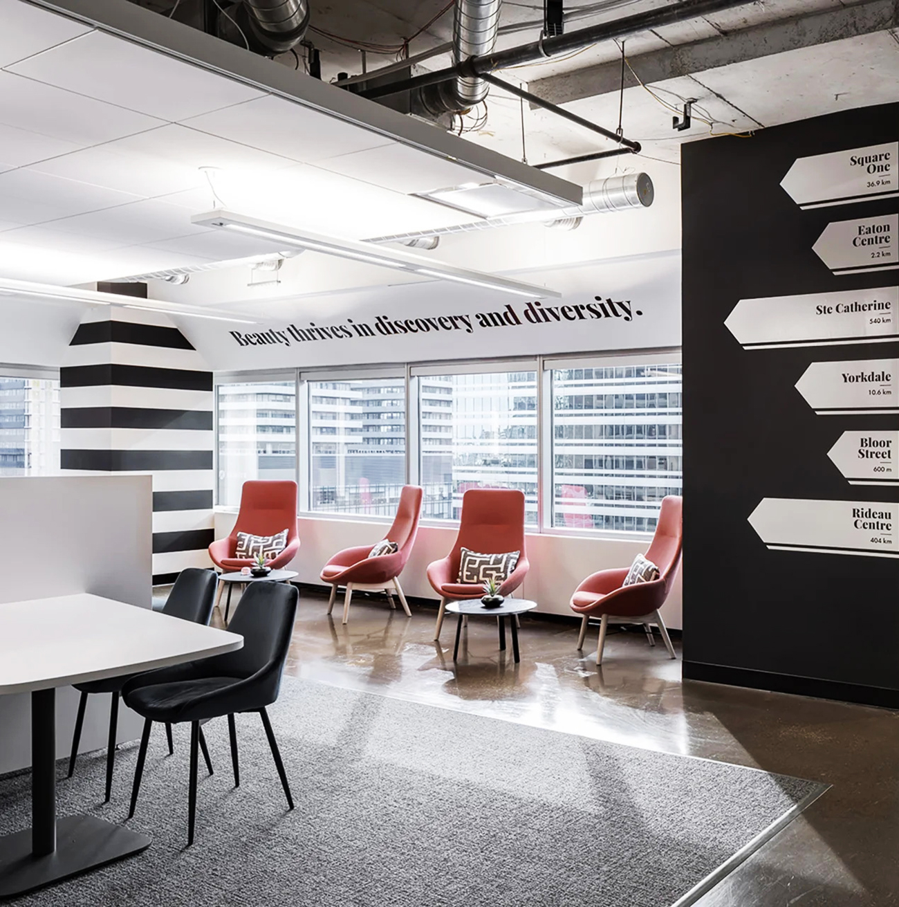 预算有限,效果无限——这正是Sephora多伦多总部设计的核心命题。Revel设计团队的做法,就像一套出色的护肤流程:不堆砌,只精准。设计克制装饰冲动,保留空间原有价值,避免大动干戈的建筑改造,转而让大胆鲜明的品牌元素担当空间主角。结果证明:不必重金投入,也能打造出精致高效、个性十足、光彩照人的办公空间。