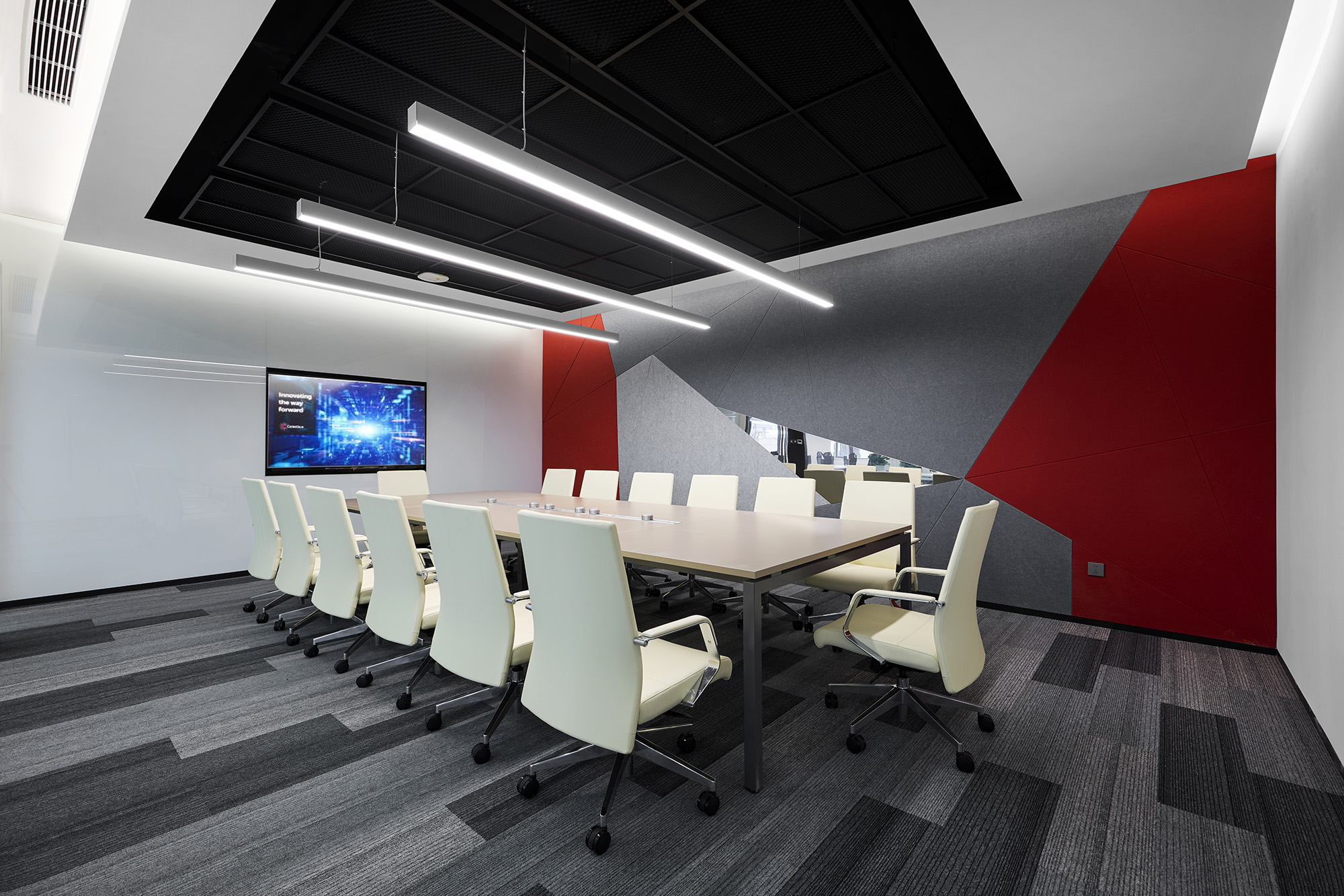 会议区不只是“开会”,而是承载企业大量决策与信息流动的地方。本案设计重点放在三个维度: