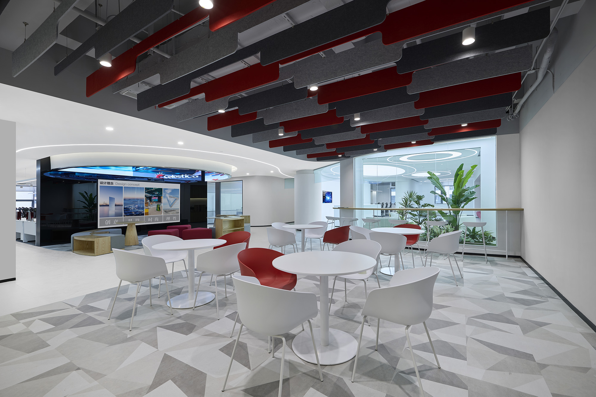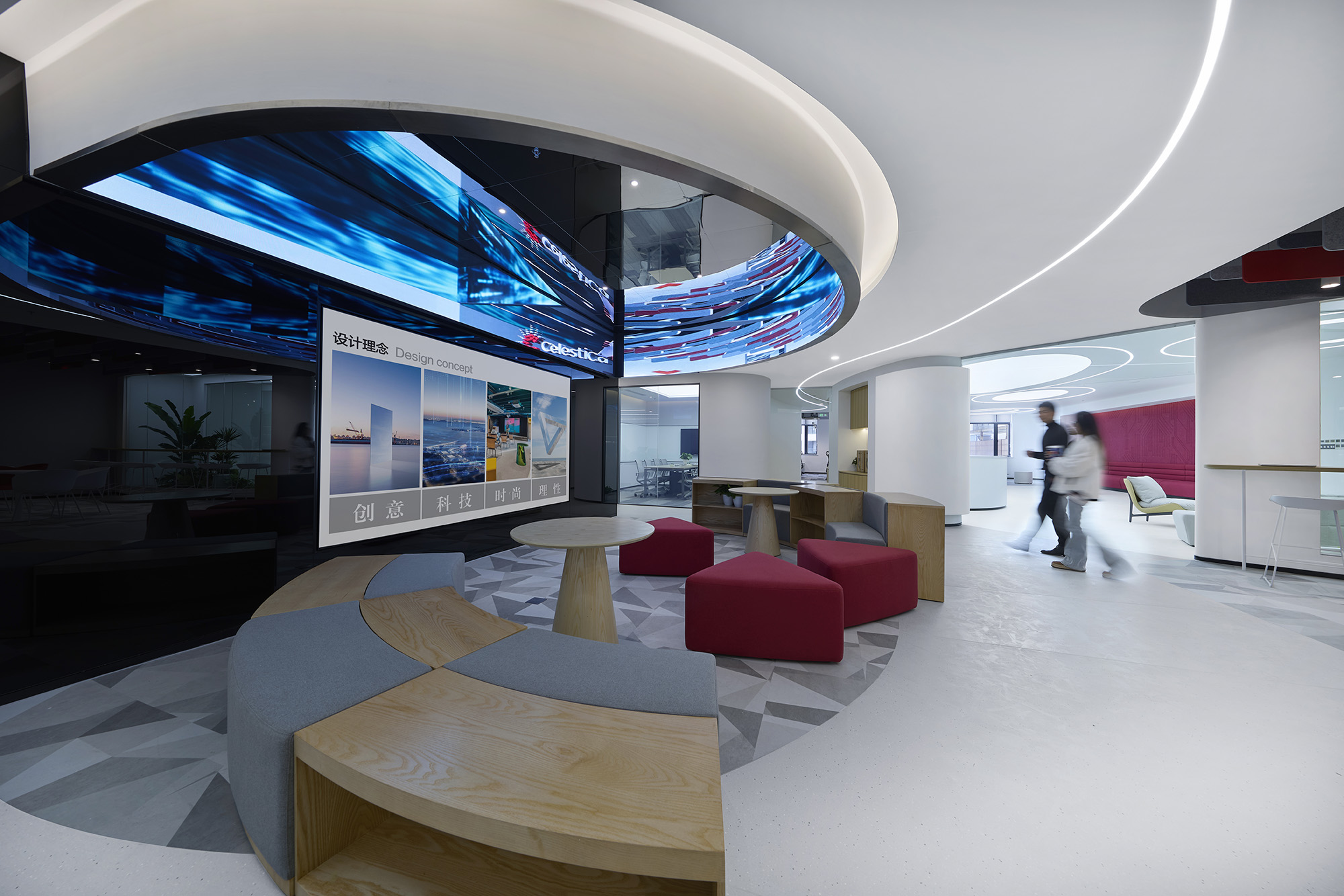 整个空间围绕四个关键词展开:科技感、理性秩序、高效协同、适度人性化。