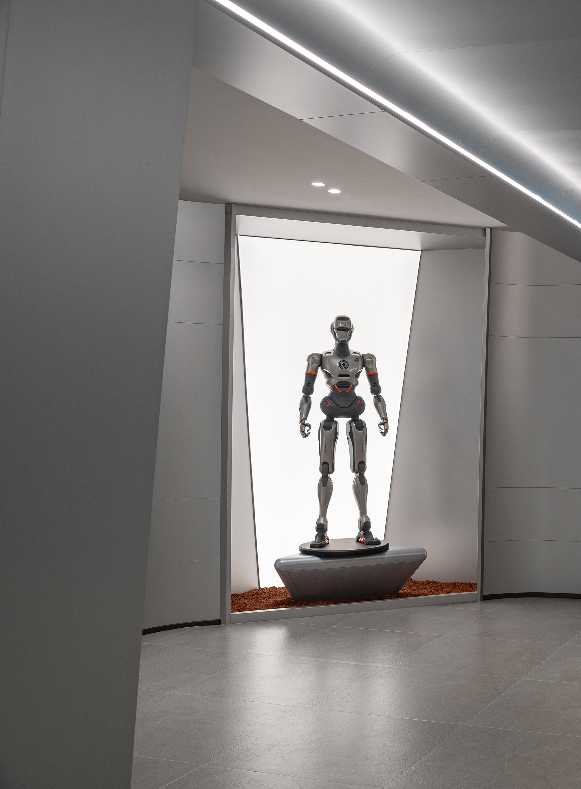 作为一家探索人形机器人边界的头部企业,其位于深圳湾的总部办公空间,不应该只是普通工位的大集合,它应该是一艘飞船的舰桥,一个连接现实与未来的发射场。