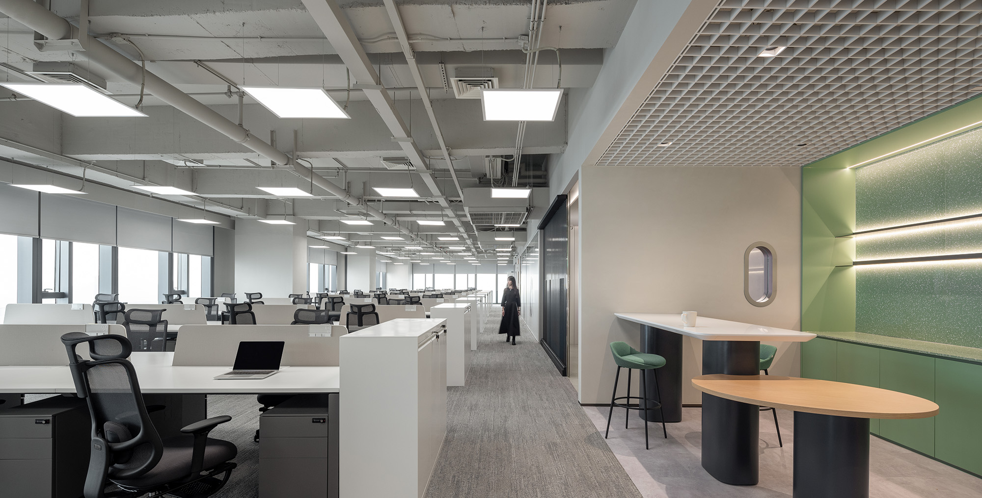 开放办公区,这里是飞船的“生活舱”。我们采用简约环保的家具系统和专业的照明设备,呈现出高效整洁的工作环境。员工可以根据心情和任务,在“专注模式”和“协作模式”之间自由切换。