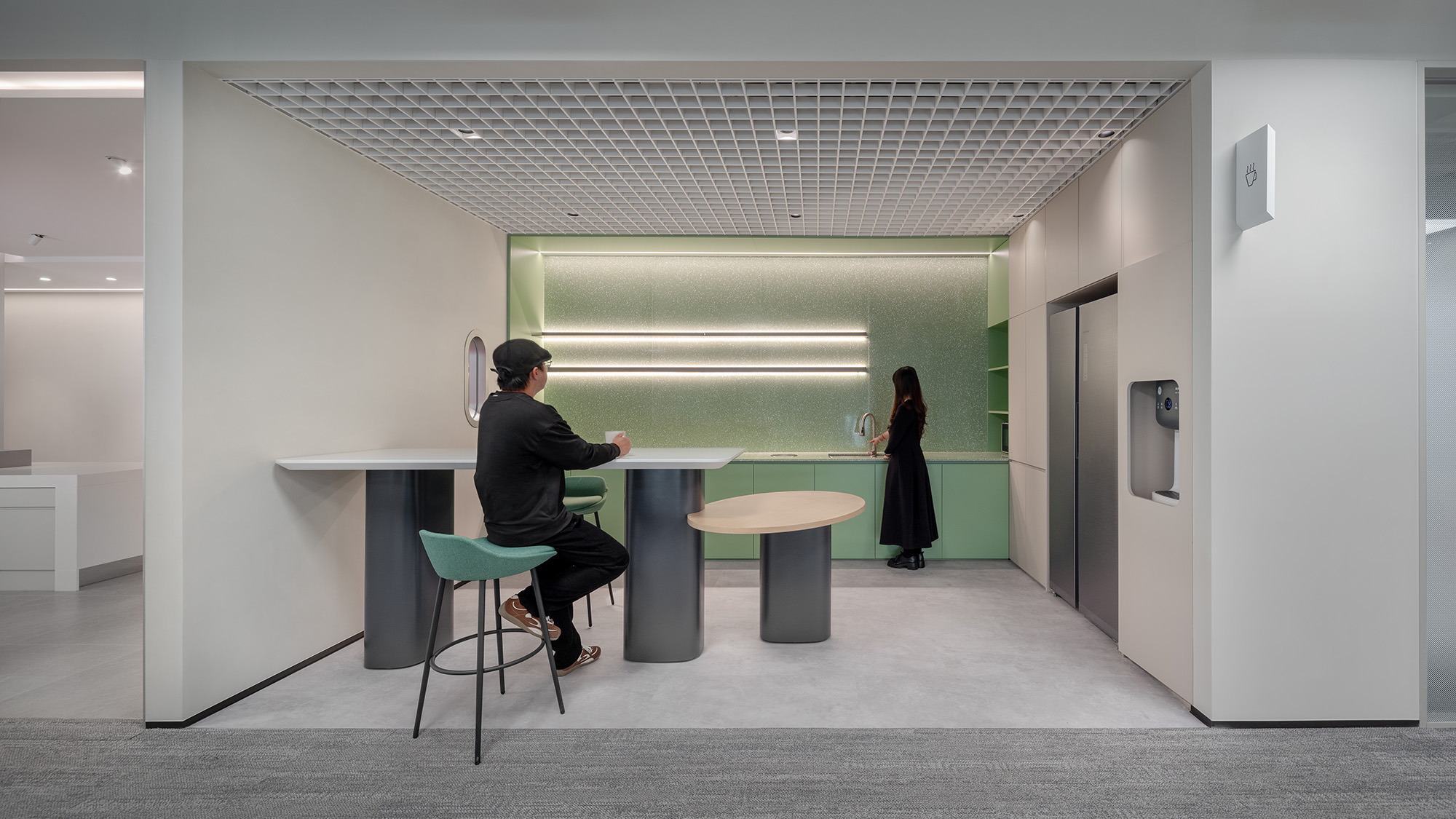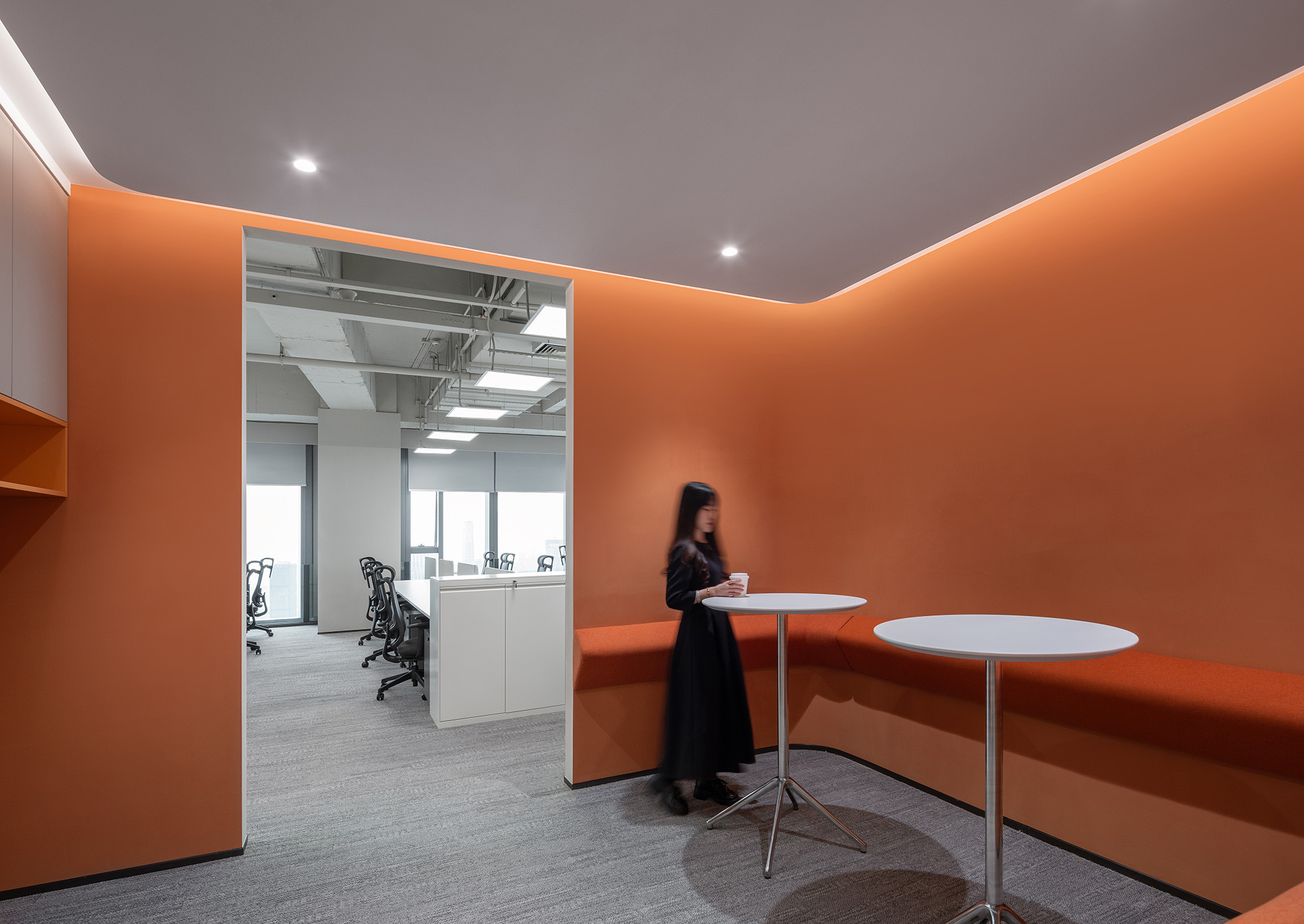 开放茶歇区与休闲区,这是飞船上的“能量补给站”与“观景甲板”。设计引入了更温暖的颜色和柔软的布艺,与大面积的金属质感形成反差。当工作逐渐成为生活的一部分,那么舒适放松的休憩环境,也是办公空间里不可或缺的关键。