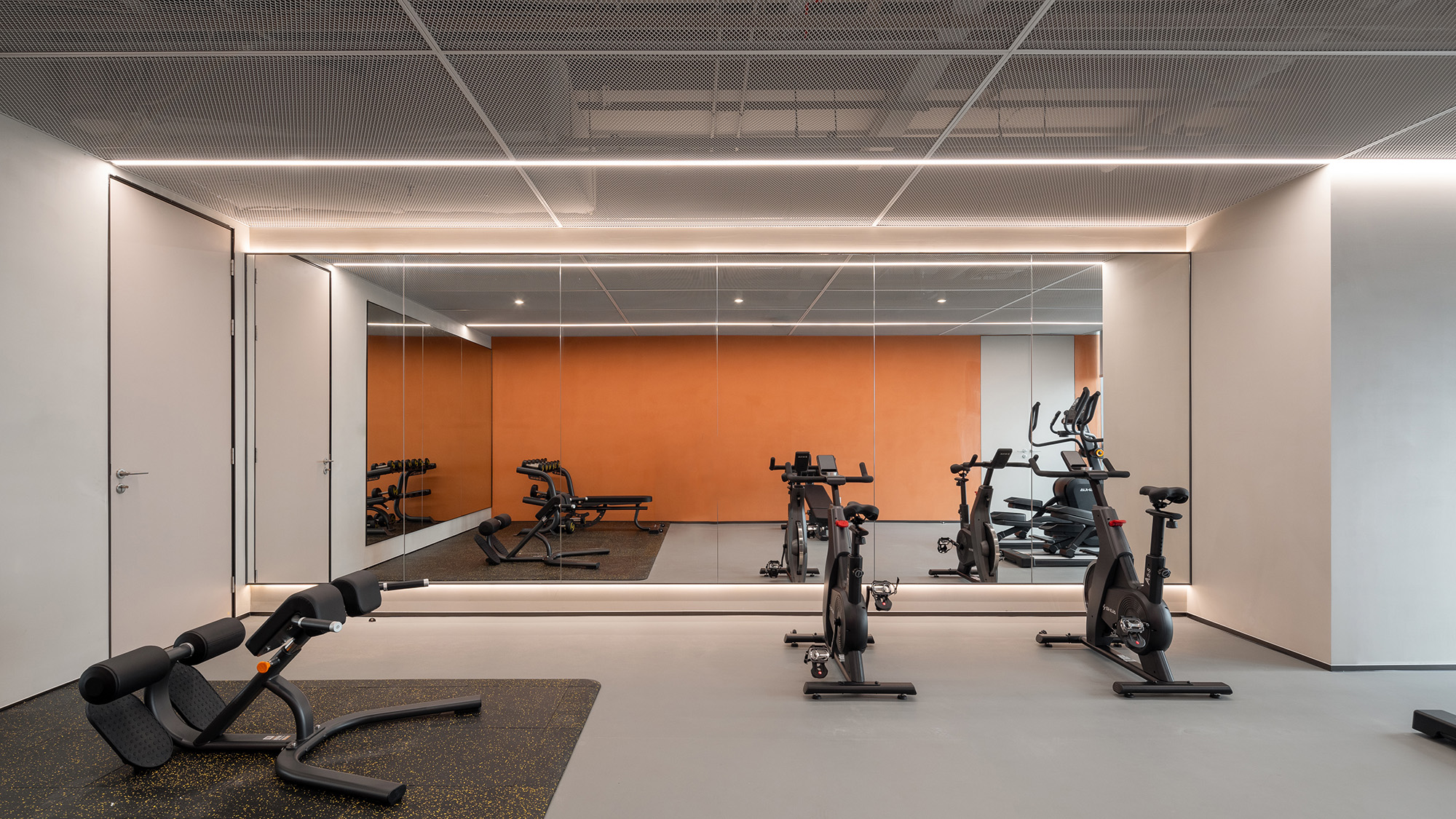 健身中心,这是远征的“体能训练舱”。高强度的运动需要视觉的释放。我们用明快、高饱和度的色彩点缀其间,让宇航员们在这里挥洒汗水,为下一次的探索储备体能。