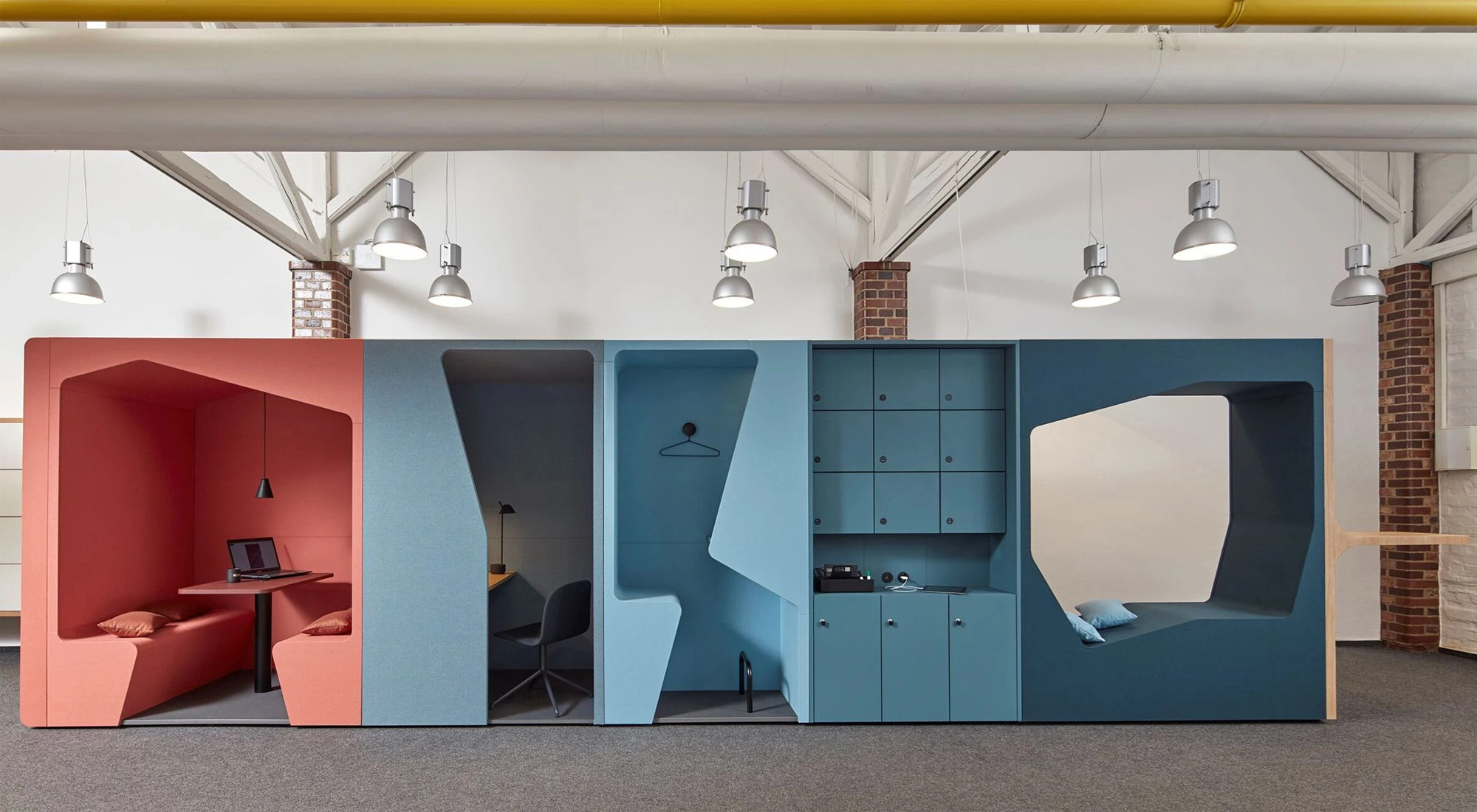 Tags:办公家具,Parkour“跑酷”、柜式工作舱、创意橱柜与隔断、多元复合设计、模块化、色彩、趣味、美学