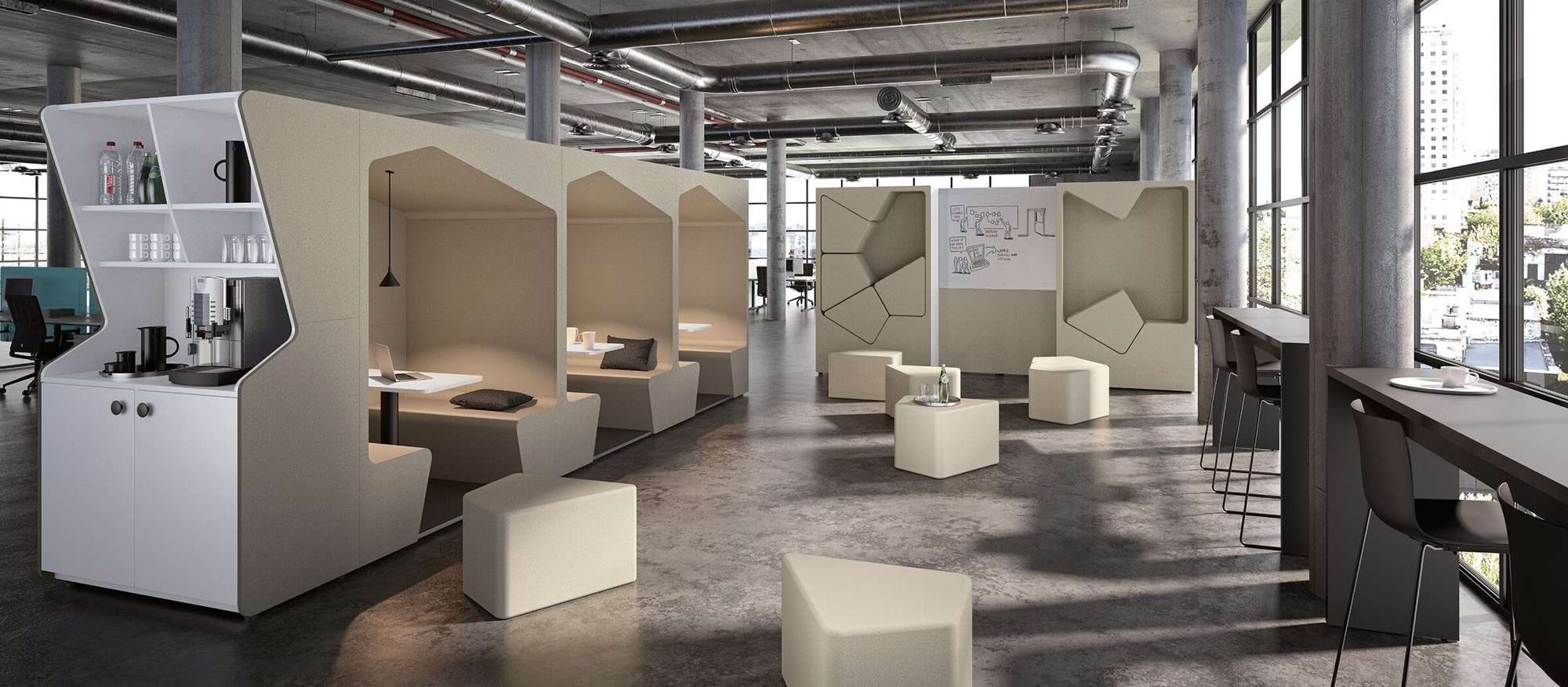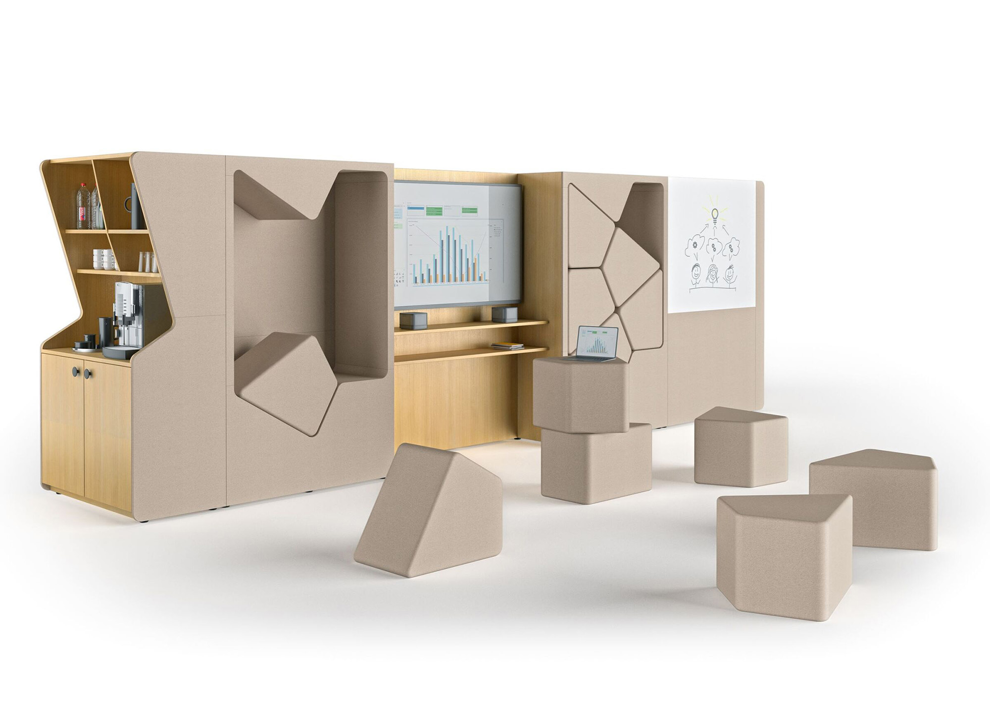 核心特色:模块化组合、适用于敏捷办公环境的解决方案、多功能复合设计、高效空间利用。