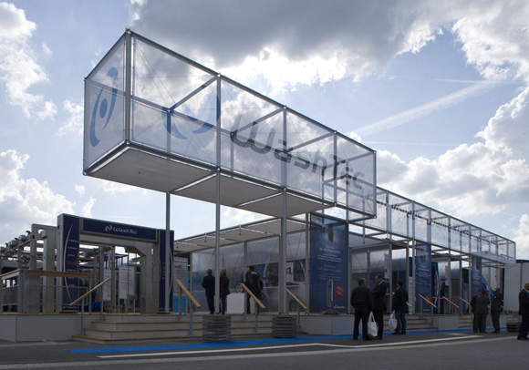 德国(Burkhardt Leitner)布克耐特模块化建筑系统源于游牧民族帐篷的结构造型。设计师依据支撑件和膜结构的压力、张力原理,通过独特的设计、现代化材料和先进的技术工艺,创造出全新的建筑构造形式。这些模块化建筑系统继承了帐篷的灵活性和流动性,同时又增强了牢固性、展示性及多样性。在展览空间中,它们会给人一种新奇、灵动的视觉享受;在办公空间中,它们能够为工作人员创造出组织灵活、功能完善、视觉通透的开放型办公环境。
