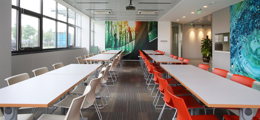 Shaw Contract Group 的展厅提供了客户会谈和产品展示的绝佳地点,除了南通本地生产的产品之外,中国客户还可以从工厂和代理商库存中获得更多的产品选择。